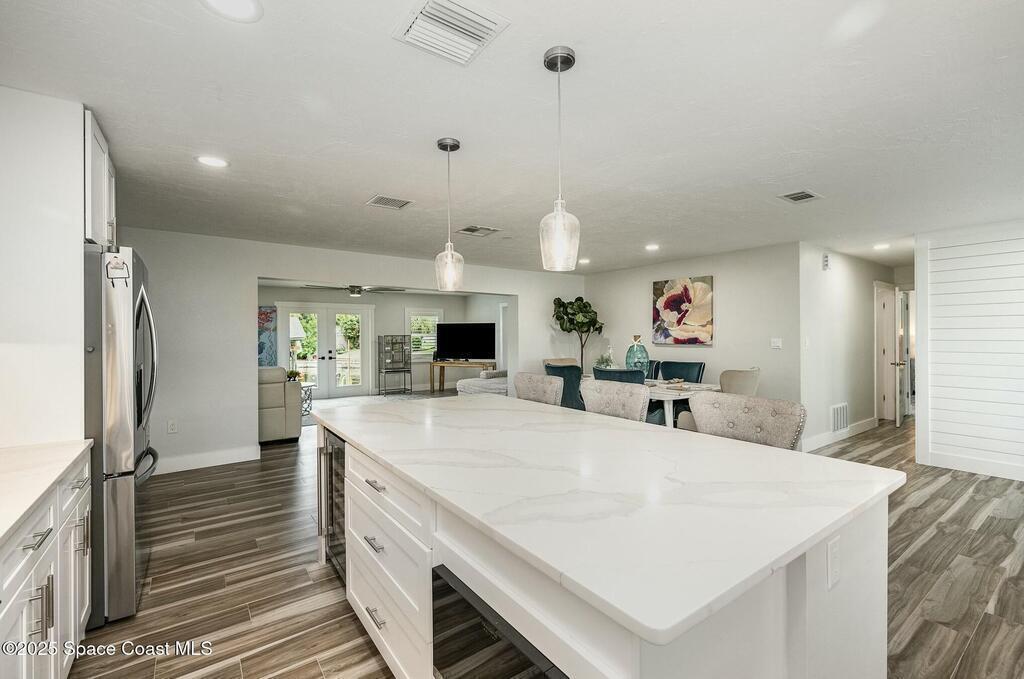 NEW in Satellite Beach, FL! Experience coastal luxury at its finest in this beautifully updated 2 BED+ | 2 BTH WATERFRONT retreat offering a versatile layout.... perfect for modern living! Featuring a stunning quartz kitchen, spacious living area and a custom primary suite, this home blends comfort and style with abundant natural light flowing through the open floor plan to a screened patio overlooking serene water views. Step outside to a tropical, fenced backyard oasis complete with a private dock where dolphins and manatees are frequent visitors, plus a newer boat lift (2024) for effortless waterfront adventures! Recent upgrades include a new EV Charging Station, Roof (2023), Lennox HVAC Furnace (2025), Water Heater (2024) and a spacious LANAI added in 2025. Fantastic BEACHSIDE proximity, with NO HOA and just minutes from shopping, dining and A-Rated schools... this exceptional property delivers the ultimate SPACE COAST lifestyle!