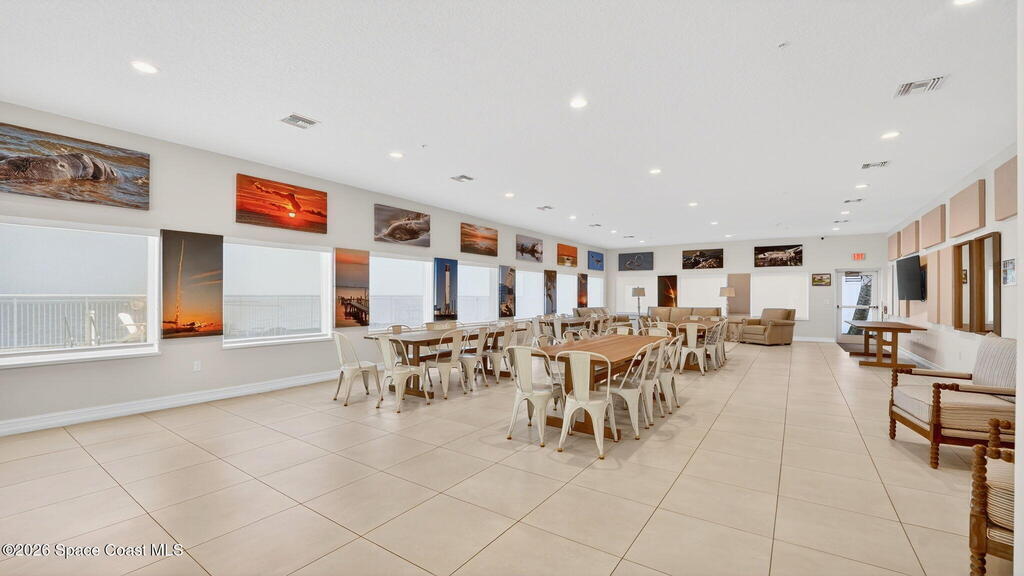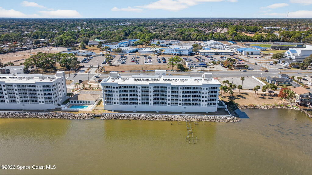 Built in 2023 & offering the 2nd Largest Floor Plan in River Palms, this Waterfront Condo delivers iconic Space Coast Views. Enjoy Impact Windows & a Private Balcony overlooking the Indian River & Kennedy Space Center for front row seats to Rocket Launches from the Living Room or the Primary. Inside, oversized Porcelain Tile runs throughout, paired w/ Granite Counters in the Kitchen & Baths. The Kitchen shines w/ SS Appliances, an Upgraded Double Oven, Farmhouse Sink, & Classic Subway Tile. A dedicated Laundry Room includes a Smart Front Load Washer/Dryer + Pedestals & Utility Sink. The Living & Dining areas are enhanced w/ Crown Molding. The Primary Suite features a Walk-in Closet & En Suite w/ Dual Sinks. Spot Manatees, Dolphins & Stingrays daily! Resort Style Amenities include a Waterfront Heated Pool, Clubhouse, Fitness Center, & Garage Parking. Maintenance Fee includes Water, Sewer, Trash, Internet & Cable. Minutes to Beaches, Dining, Shopping & SR 528.