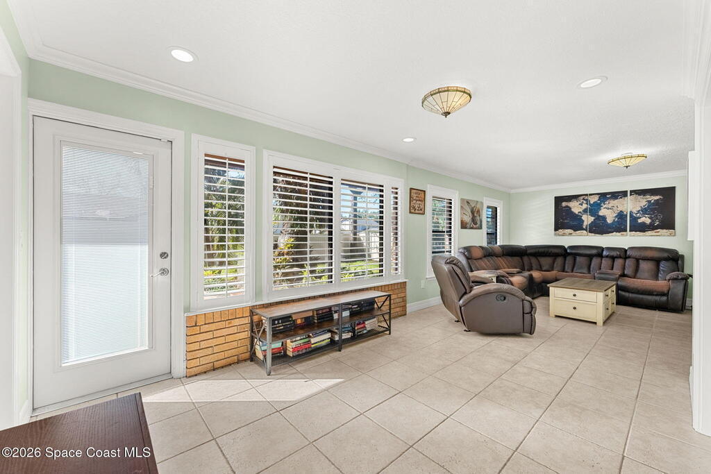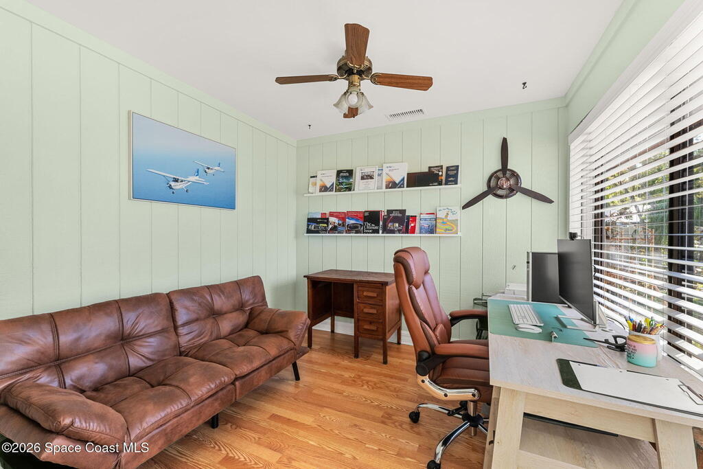 Extremely well maintained Suntree home with the perfect blend of timeless character and modern updates! Vaulted ceilings and plenty of windows make this home feel bright, airy and inviting the moment you step inside. 4th bedroom/office has a wall of windows that overlook fully fenced backyard. Split floorplan. AC 2024. Oversized 2 car garage. Additional storage room in rear of home, perfect for your holiday decor or garage storage overflow. Walkable to Interlachen Park with shaded playground, basketball hoops, covered pavilion. As part of the Suntree Master Association, residents can enjoy jogging trails, pickleball, parks, playgrounds, etc.