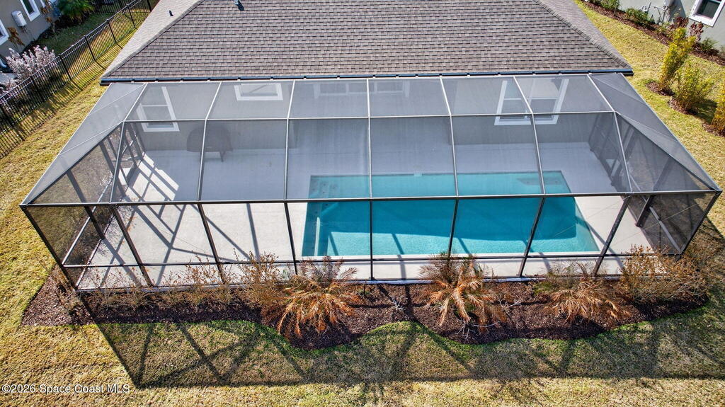 One of the LARGEST POOL homes in Sendero Cove! This 5-BDR, 4-BATHS home features a spacious OPEN FLOOR plan with 4 BDR & 3BATHs DOWNSTAIRS = PRIMARY suite on the main level, + a large UPSTAIRS BEDROOM with a FULL BATH-perfect for guests or a bonus room. The kitchen offers GRANITE countertops, SS appliances, AMPLE CABINETRY, a GAS STOVE, and a large breakfast bar with a view of the living area and private pool. The PRIMARY suite features TRAY CEILINGS, DUAL SINKS, a WALK-IN SHOWER, and a generous WALK-IN CLOSET. Additional highlights include a LARGE LAUNDRY ROOM, SCREENED LANAI, private backyard/NO REAR NEIGHBORS. LOW INSURANCE benefits of a newer 2023 build! Located near the back of the neighborhood for quick access in and out. Residents enjoy Addison Village amenities such as a clubhouse, tennis, pickleball, gym, and resort-style pools. MOVE-IN READY home in a HIGHLY DESIRABLE AREA! Great schools, restaurants, stores, churches, a VA clinic, and the BEACH is just 20 min away!