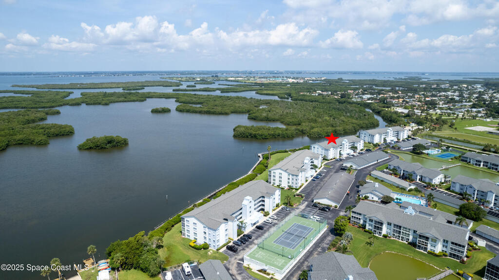 VERY RARE 2 PRIVATE-1 CAR GARAGES CONVEY!! Direct Riverfront with views of the Banana River and the Thousand Islands Preserve! You will enjoy watching marine wildlife from your condo all day, heron, dolphin, manatee, osprey and more! West facing unit with amazing sunsets. This well-maintained unit is ready for you. Primary bathroom has been beautifully updated with large walk-in shower and closet. Decorated in pleasing neutral tones to help you relax and enjoy the view. Plantation shutters throughout. Windows are high impact and storm shutters on the lanai. For the active lifestyle Harbor Isles Community offers 2 heated pools plus 1 heated lap pool, 2 tennis and pickleball courts w/ lights, sauna, exercise room, clubhouse, riverfront dock and free RV & boat storage. Ramp Road Park next door to launch your watercraft. The Atlantic Ocean is just 2 blocks away. Community conveniently located near Cocoa Beach Playhouse and Downtown Cocoa Beach for all your entertainment enjoyment!