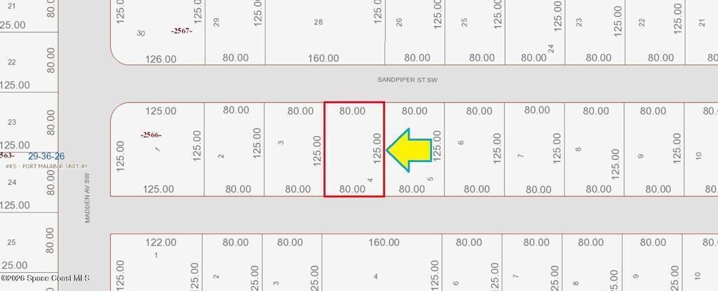 It's a .23 acre buildable residential lot available in Port Malabar Unit 49 of Palm Bay. Located in the southwest section, this lot has a drainage canal in the rear allowing more privacy, and is just 2.6 miles - 6 minutes to Westside Elementary School, 4.5 miles - 10 minutes to the Publix Supermarket, 15.6 miles - 29 minutes to Melbourne Airport, and 18.7 miles - 34 minutes to the beaches of Indialantic. From exit #176 of I-95 go west on Palm Bay Road for .7 miles, left on Minton Road for 3.4 miles, right on Jupiter Boulevard then quick left on DeGroodt Road for 3.3 miles, right on Osmosis Drive for 1.0 mile, left on Madden Avenue for 1.1 miles, and left on Sandpiper Street. The lot will be on your right. A previous environmental report on the property is paperclipped to the listing.