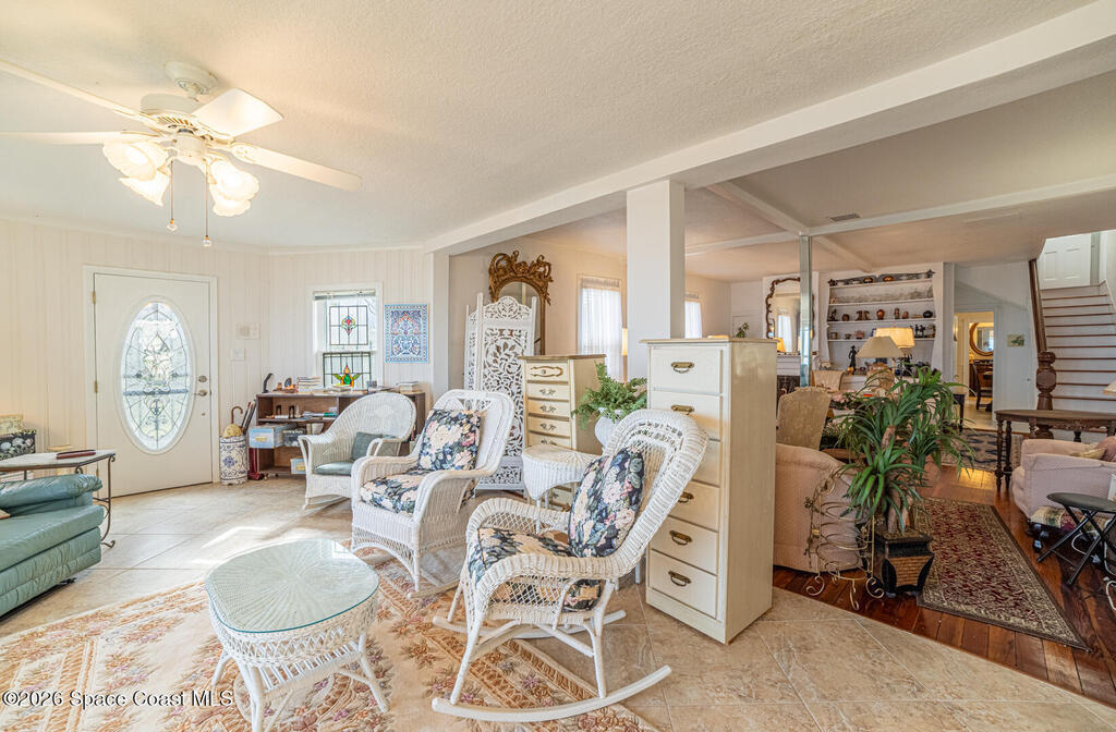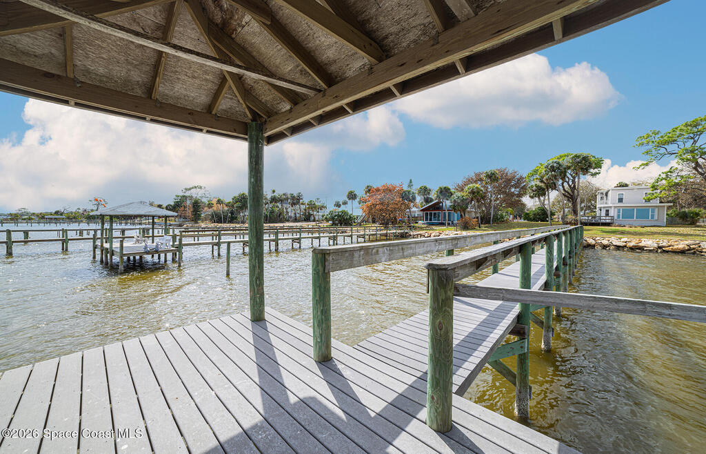 Experience timeless charm and modern comfort in this stunning Indian River waterfront home. Original wood floors blend beautifully with a thoughtfully updated kitchen, creating the perfect balance of character and convenience. Enjoy breathtaking river views and unforgettable rocket launches from your private dock or the primary bedroom balcony. This exceptional property features two fireplaces, high-impact storm shutters, a newer roof, 2 A/C units, and a sprinkler system. The spacious 3-car detached garage offers ample storage and workshop potential, while the dedicated laundry room adds everyday ease. A rare opportunity to own a true waterfront retreat in a premier location.