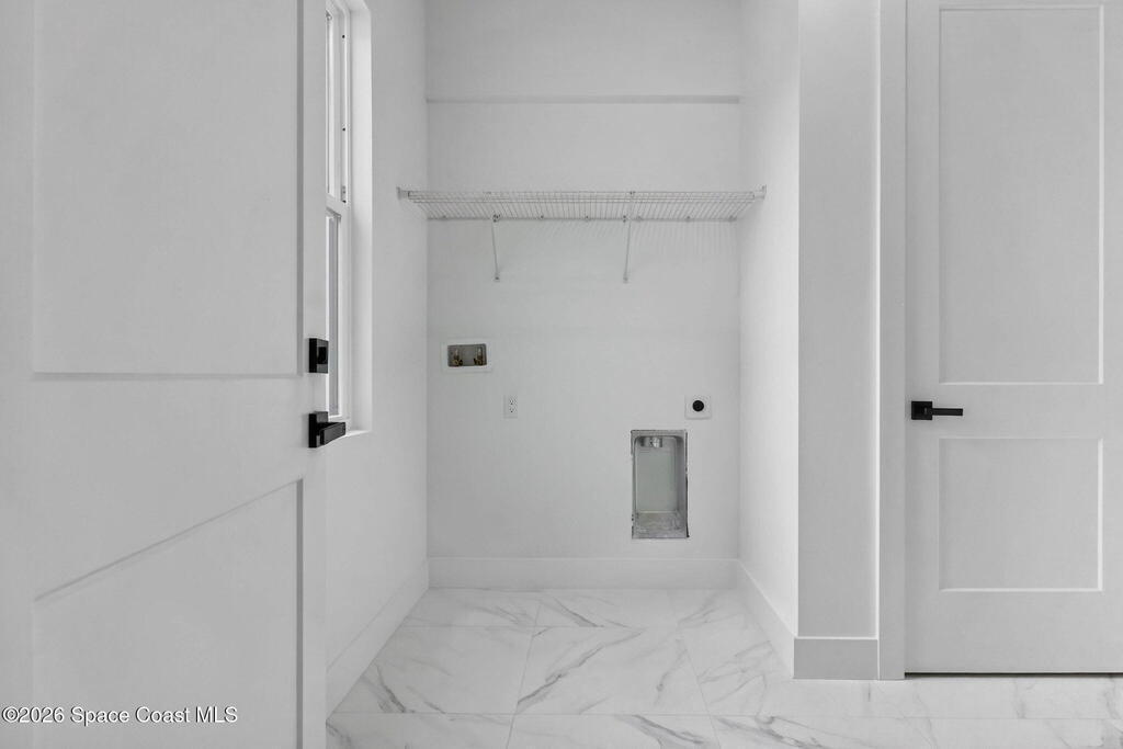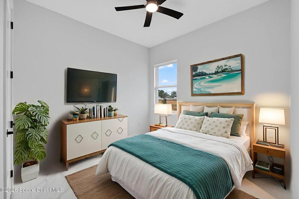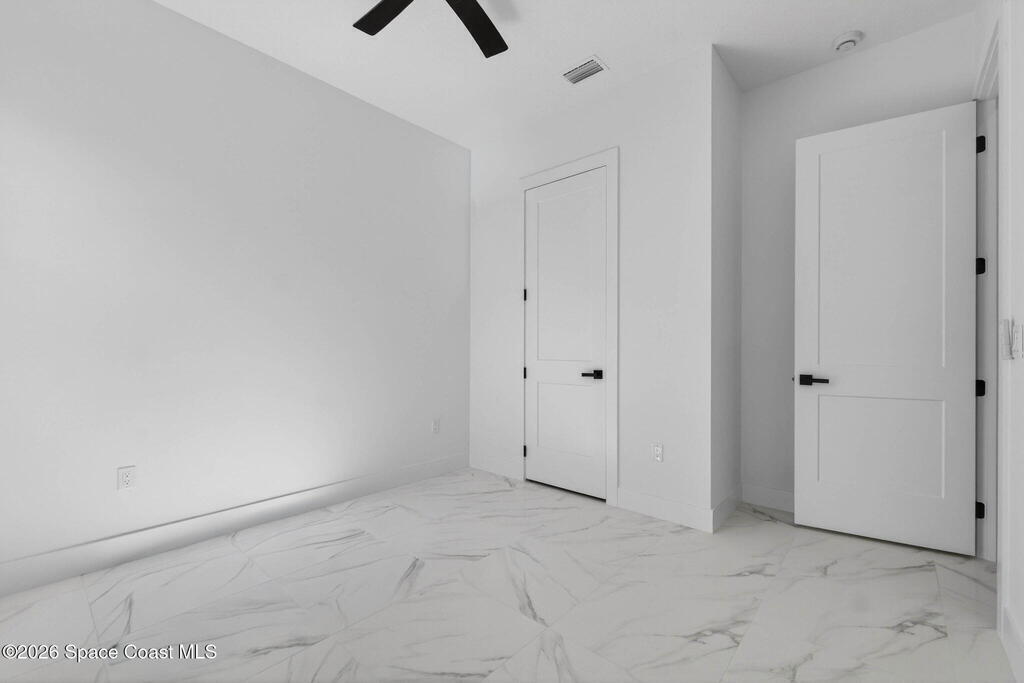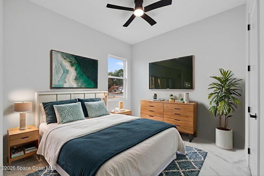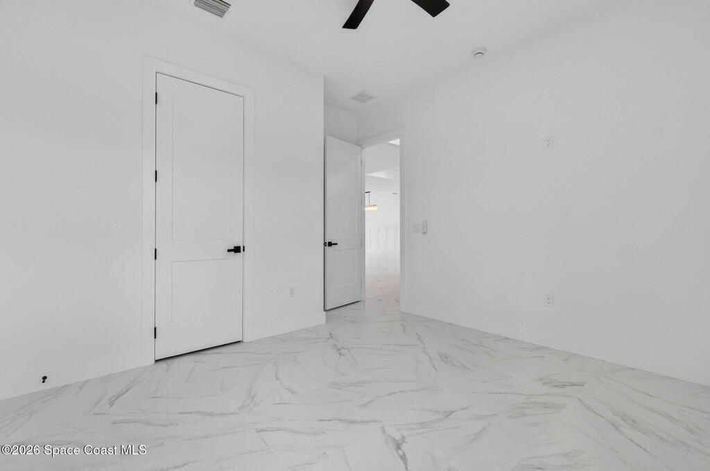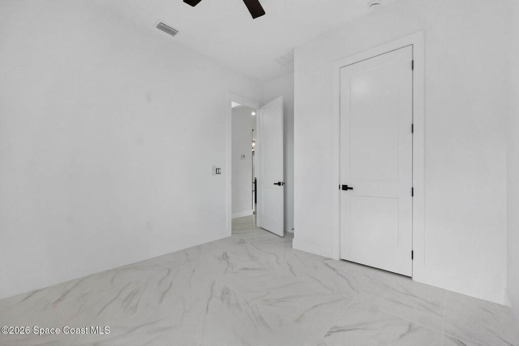 A rare canal-front new construction offering elevated modern living in Northwest Palm Bay. This 2,350 sq ft residence features true 10-foot ceilings with dramatic double tray details, creating a grand architectural presence. Designer 24'' x 24'' tile flooring flows seamlessly throughout, complementing the home's refined contemporary aesthetic.The gourmet kitchen features a wall oven and high end appliance package, ideal for entertaining and everyday living. The spa-inspired primary suite offers a freestanding soaking tub and spacious walk-in shower.Enjoy a covered patio overlooking the tranquil canal, providing privacy and a peaceful outdoor setting. Additional highlights include a luxury paver driveway, paver patio, smart lock system, Impact windows, and modern energy-efficient construction. A rare opportunity to own a thoughtfully designed canal-front residence built for comfort, prestige, and lasting value.