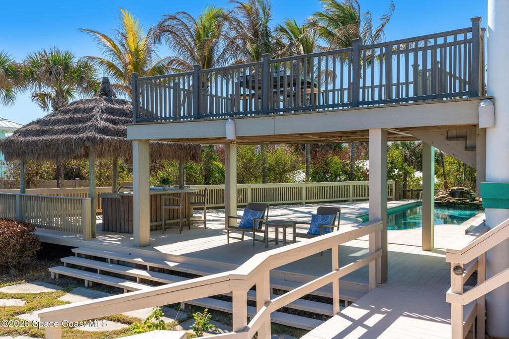 Incredible Oceanfront estate home on over an acre in one of the most pristine stretches of Florida coastline you'll find ! A private Oceanside, heated ,salt system pool, parking for up to 8 cars, private elevator, private separate guest suite, newer impact glass windows throughout, extensive outdoor balconies and deck areas and much more to enjoy should you end up being the lucky next owner of this magnificent waterfront property.