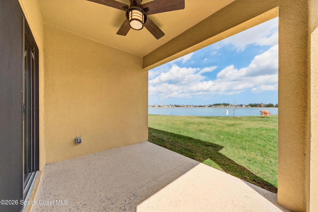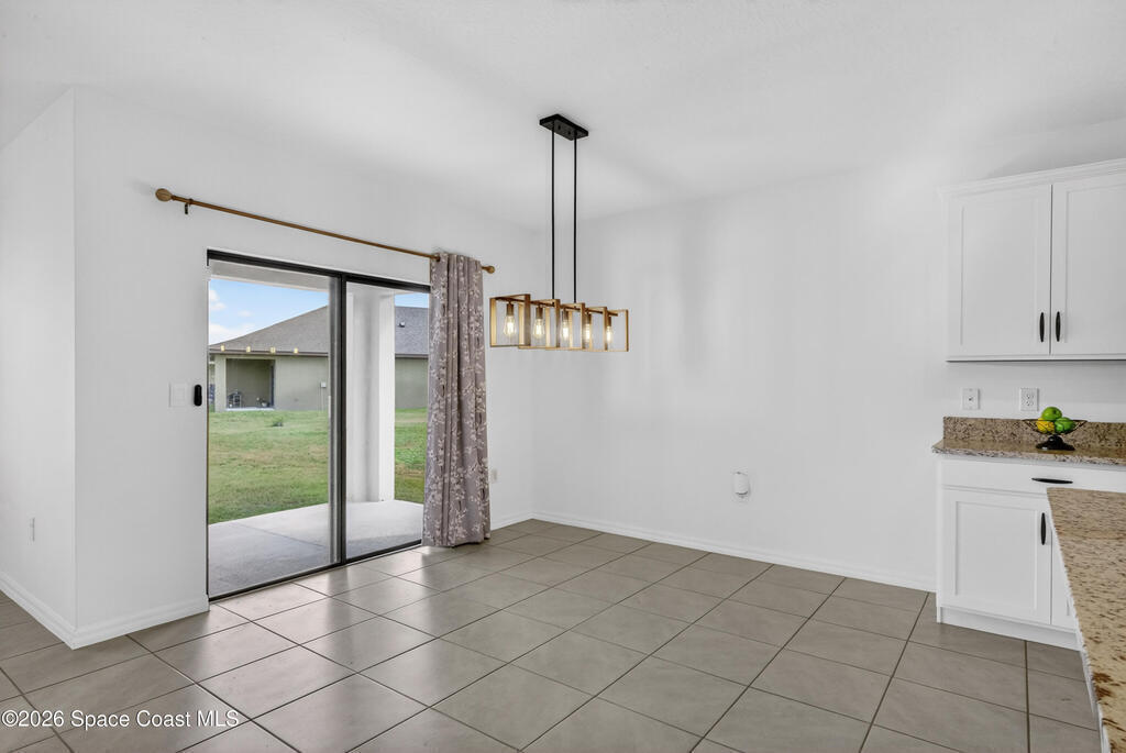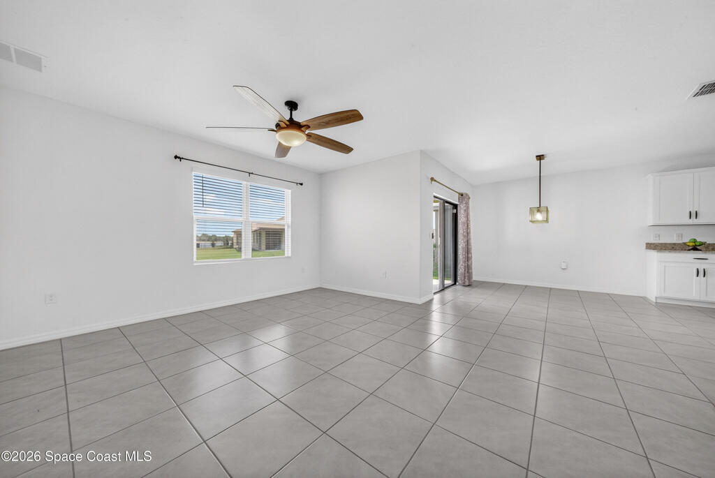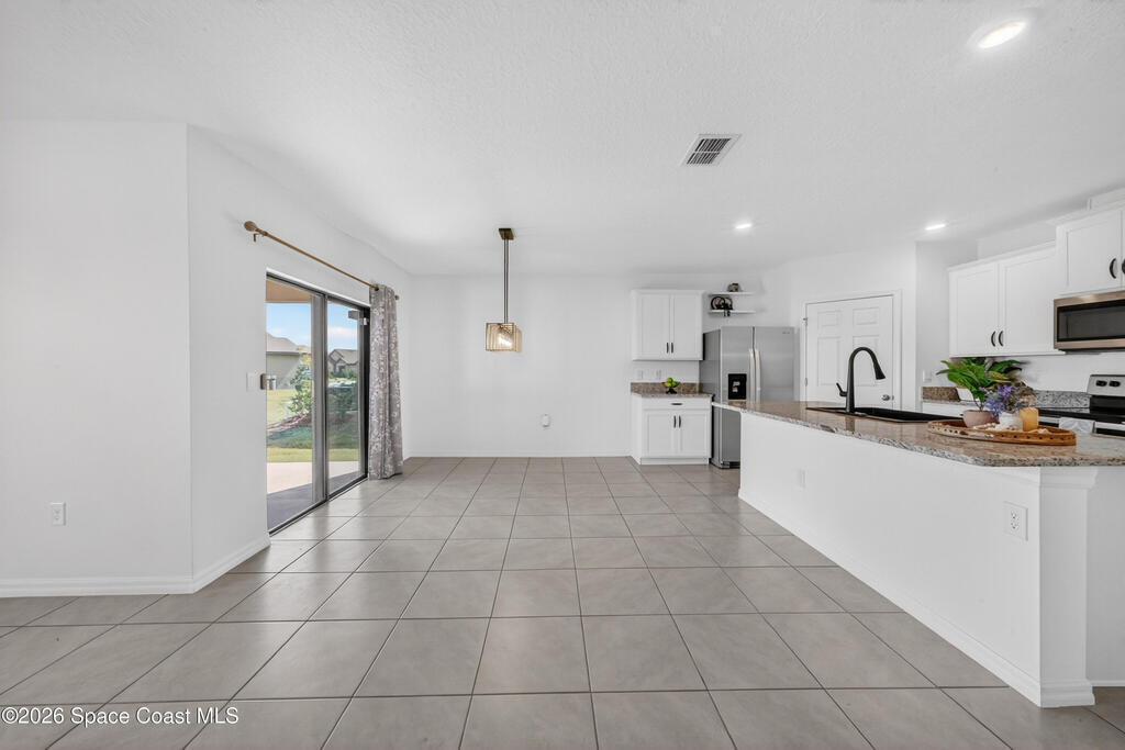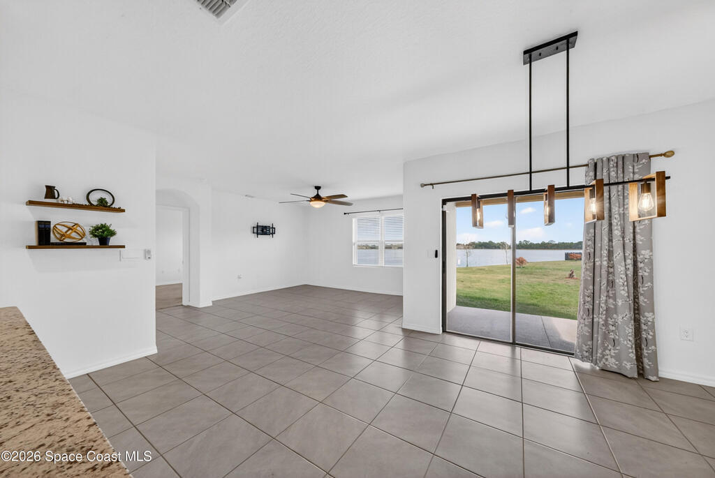 Don't wait for new construction to be completed. This 2023-built home is move-in ready. Offering 4 bedrooms and a thoughtfully designed split floorplan, the layout provides functional separation while maintaining an open flow between the kitchen, dining, and living areas. Natural light fills the space, and peaceful pond views can be enjoyed from the main living areas. The kitchen features upgraded finishes, including a newer sink, and overlooks the central gathering spaces. Neutral interior tones create a clean, move-in-ready environment. Located within a gated community in Southeast Palm Bay, residents have access to community amenities, including a pool and park area, all within a short distance from the home. Convenient access to major roadways, shopping, dining, and everyday services.