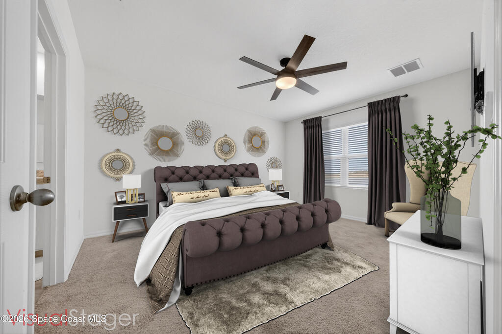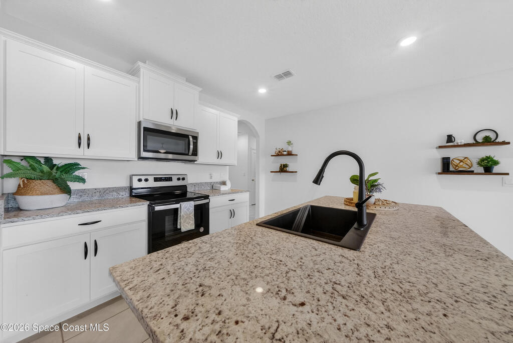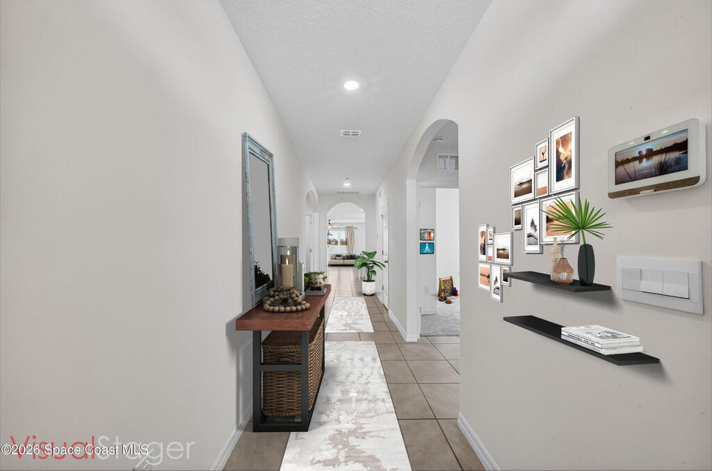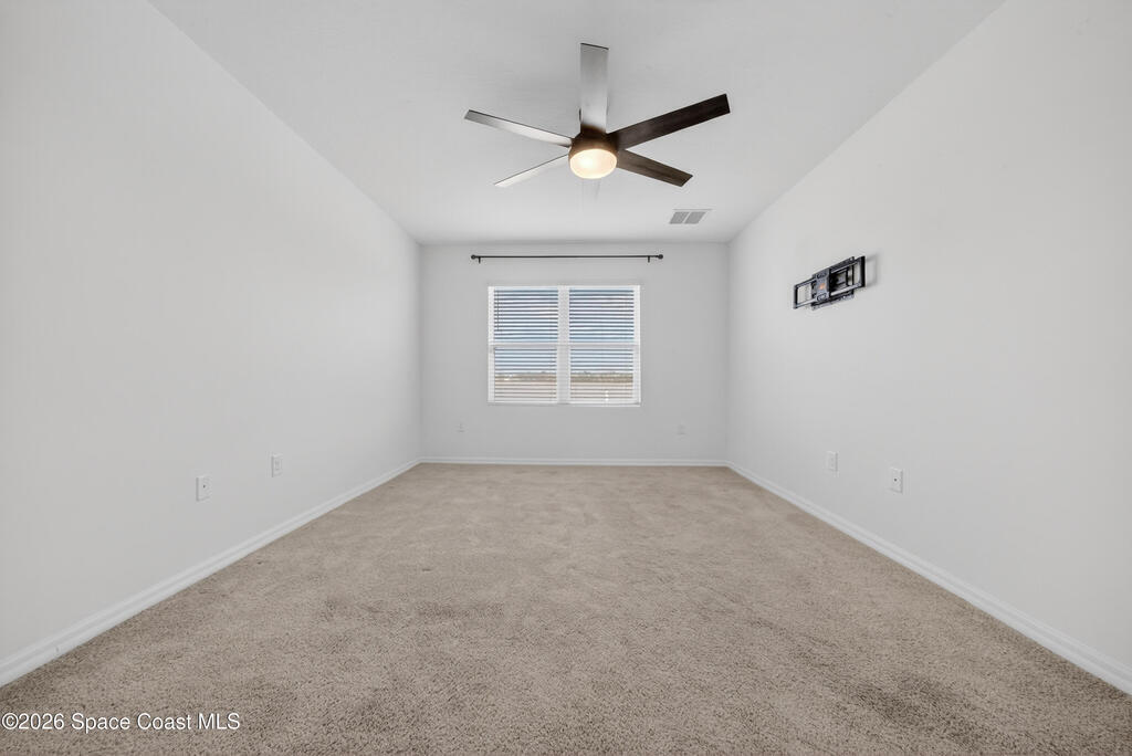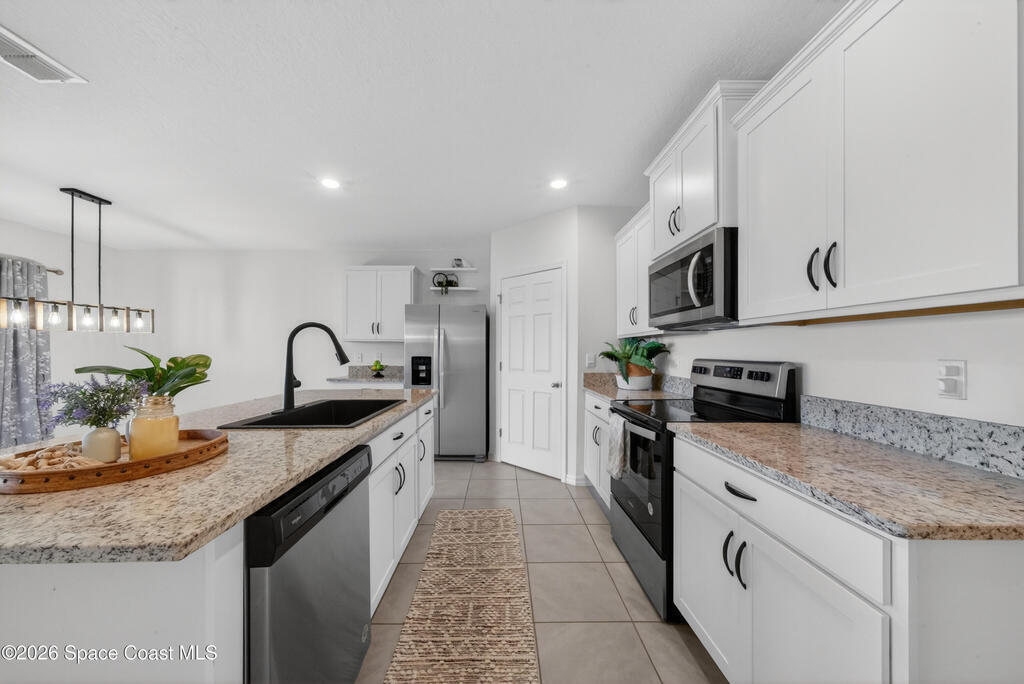 Don't wait for new construction to be completed. This 2023-built home is move-in ready. Offering 4 bedrooms and a thoughtfully designed split floorplan, the layout provides functional separation while maintaining an open flow between the kitchen, dining, and living areas. Natural light fills the space, and peaceful pond views can be enjoyed from the main living areas. The kitchen features upgraded finishes, including a newer sink, and overlooks the central gathering spaces. Neutral interior tones create a clean, move-in-ready environment. Located within a gated community in Southeast Palm Bay, residents have access to community amenities, including a pool and park area, all within a short distance from the home. Convenient access to major roadways, shopping, dining, and everyday services.