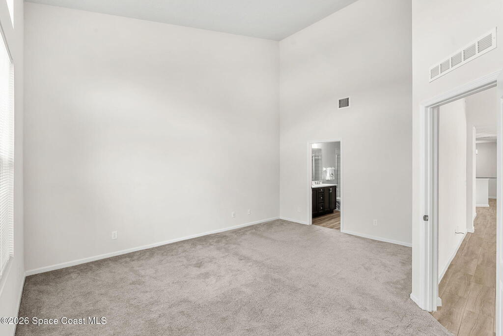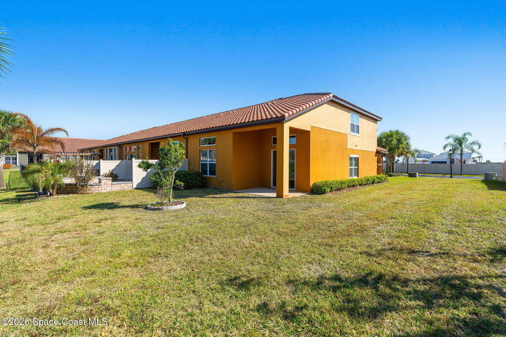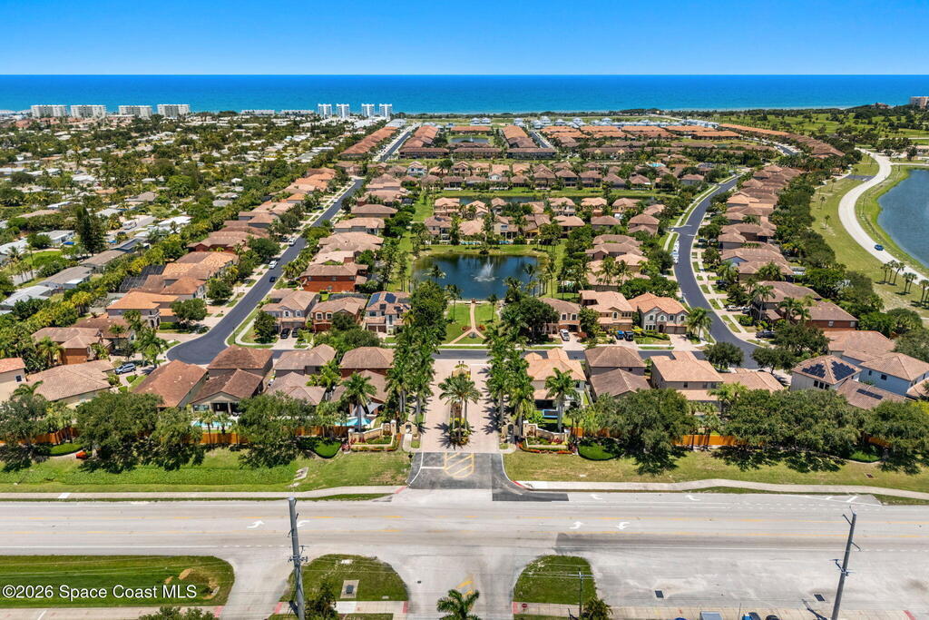 BIG lakefront, end-unit townhome in Montecito, Satellite Beach just steps to the ocean! Built in 2019 with a 4-foot full side extension, this extra-wide home offers over 2,400 SF of bright, open living space with soaring vaulted ceilings. First-floor primary suite features lake views, vaulted ceiling, double vanities, and a walk-in shower. Upstairs includes 2 bedrooms and a HUGE loft. Enjoy a 2-car garage, downstairs laundry, powder room, and abundant storage. Wood-look tile floors, gorgeous kitchen, and open-concept design make this home impressive. Interior freshly painted. Covered porch overlooking the lake. Montecito is a Mediterranean-inspired seaside community w/ resort-style amenities: clubhouse, pool, fitness center, playground. Golf cart to nearby public beach access, restaurants, Publix, and the Indian River. Minutes to Costco, Trader Joe's, top schools, Pineda Cswy, and I-95. Close to Northrop Grumman, L3Harris, KSC, Blue Origin, SpaceX. LOW HOA:$239/quarter! Move right in!