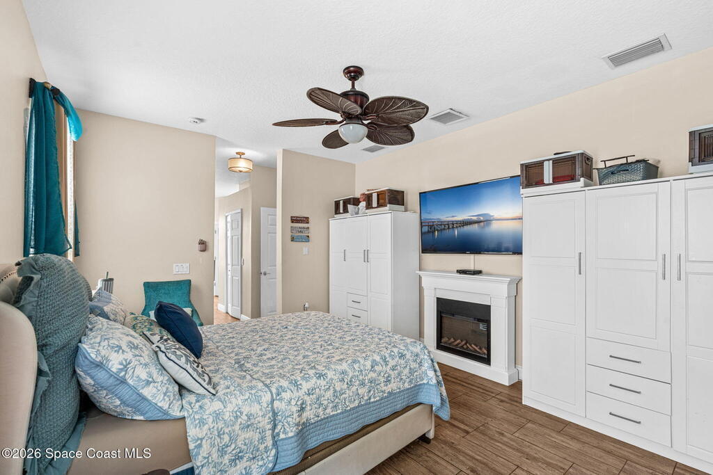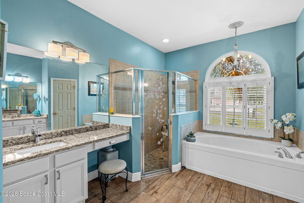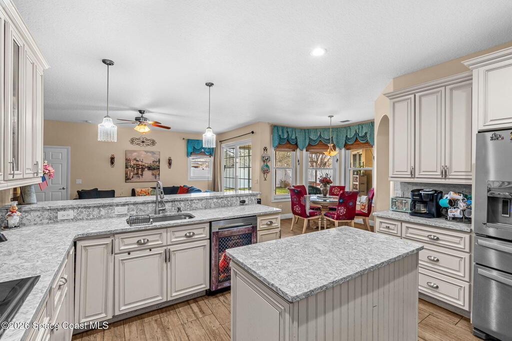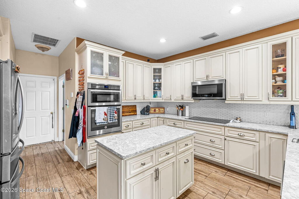Beautifully maintained 4/3/3 split floor plan with a bonus room-ideal for a growing family or multi gen. CBS construction with metal framing on a generous .23-acre lot. Soaring 9'4'' ceilings, elegant tray ceiling in the dining room, crown molding, and custom wainscoting add warmth and charm. Conveniently located near Hammock Landing, Heritage High School, Fred Poppe Park, shopping, dining, and the hospital. Curb appeal shines with lush landscaping, a paver driveway and extended walkway, fresh exterior paint, and stone veneer accents. Plank tile flows through the main living areas, primary suite, and baths, with NEW luxury LVP in secondary bedrooms. The kitchen features custom wood cabinetry, quartz countertops, and tile backsplash. Relax in the primary bath with soaking tub and separate shower. His-and-hers closets. New double-pane windows and sliders with hurricane shutters. Whole-house water filtration, 2017 HVAC (recent duct cleaning, UV light), tankless water heater, 2019 roof...