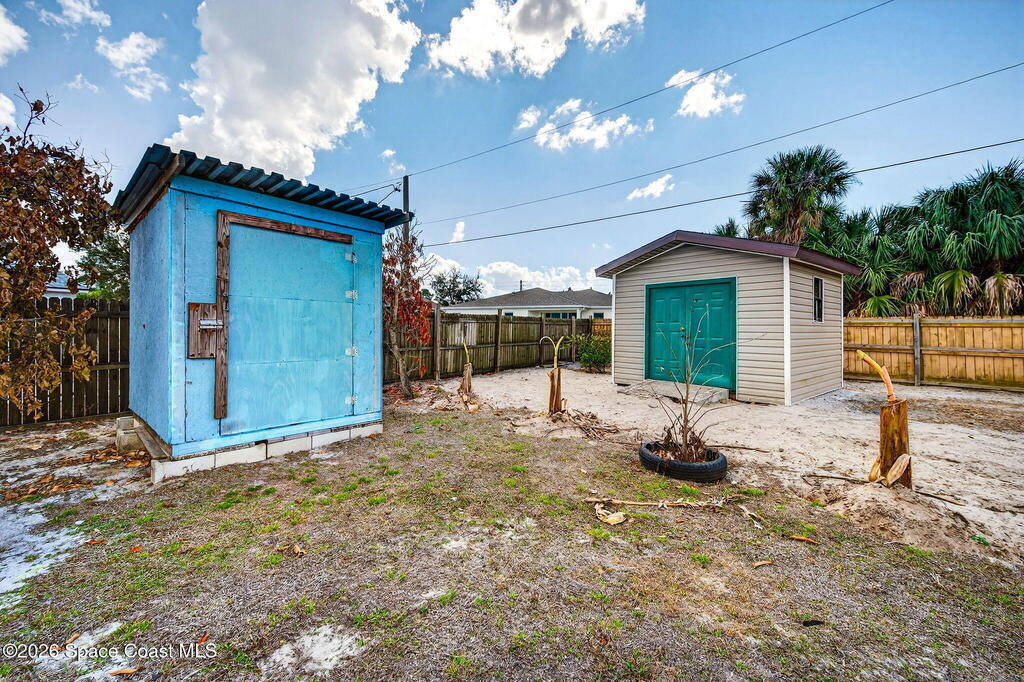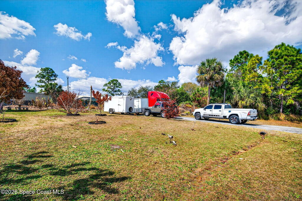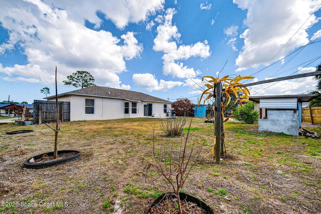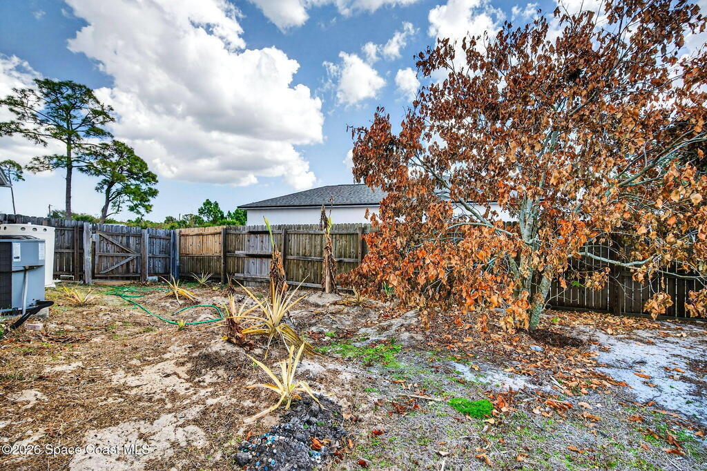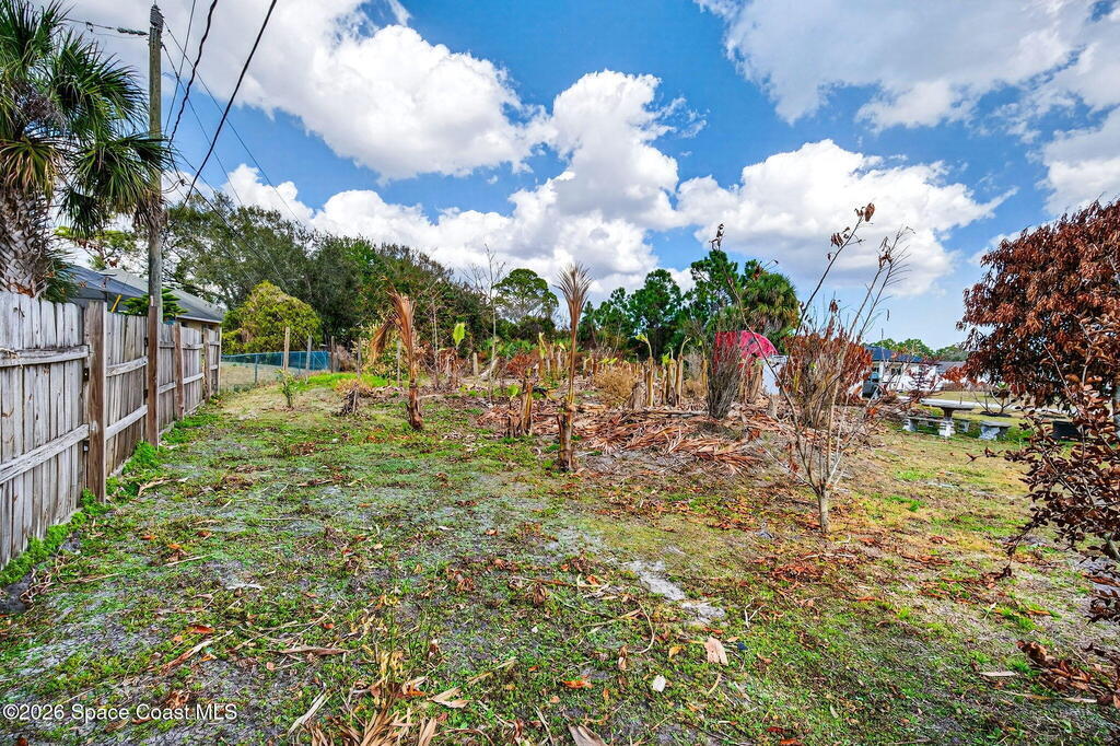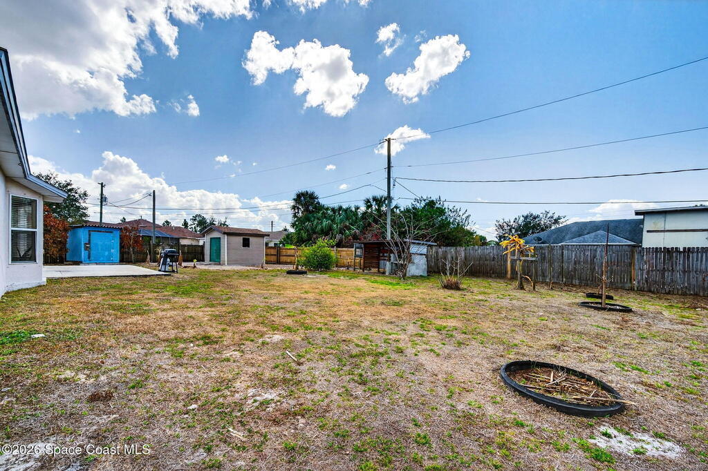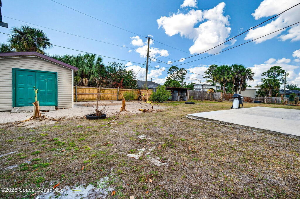 Large lot on a quiet street in Palm Bay! This 3-bedroom, 2-bath concrete block home sits on .28 acres and includes the adjacent .27-acre lot with its own separate legal description. Build a second home for rental income, create a multi-generational property, or sell the lot for extra cash! Prefer extra space? Design your own garden oasis, grow fruits and vegetables, or simply enjoy the added privacy. The backyard features a wood-burning concrete fire pit with an overhang -- perfect for entertaining and family gatherings. Endless potential in a peaceful location!