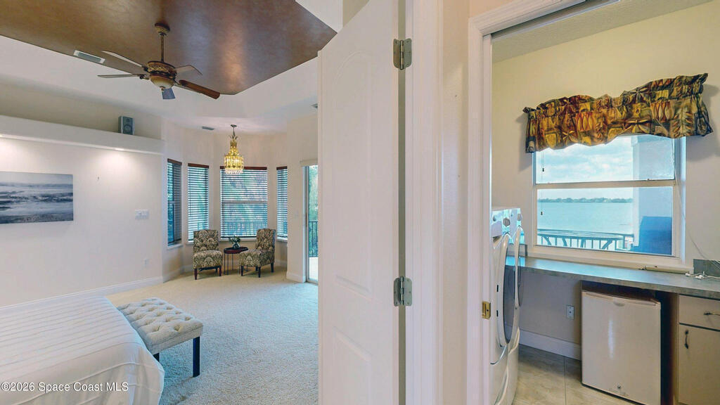 Welcome home to Tortoise Island! BEST RIVER VIEWS IN THIS COMMUMITY! 4 BED PLUS Bonus Room and Office where luxury meets tranquility. Bathed in natural light, featuring soaring ceilings and panoramic water views from nearly every room. The gourmet kitchen, perfect for entertaining flows into a spacious living area. Complete with a wet bar and mini fridge and a Bose stereo system throughout the downstairs! Enjoy the smell of ripening mangoes, and the shade your mango tree provides on a hot day as you enjoy your inground pool and sauna. Wander down to your own private oasis, featuring a modern deck and secure floating dock that makes launching kayaks, fishing, or docking your boat effortless. This home isn't just a place to live; it's a lifestyle, combining the peacefulness of nature with easy access to your aquatic adventures. With ample space for family and guests, this meticulously maintained home offers a rare opportunity for unparalleled waterfront living