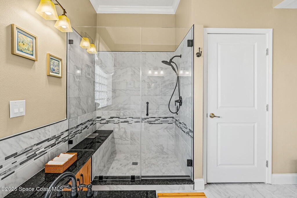 Preserve-backed perfection meets everyday function in this fully updated 4 bed + office, 3 bath pool home on a private .26-acre lot. A 2024 kitchen remodel showcases granite countertops & a layout designed for seamless flow into open living spaces framed by crown molding added in 2023. All 3 baths were remodeled in 2024 with cohesive granite finishes, while the 2024 laundry upgrade adds style & efficiency. Tile & bamboo/wood flooring run throughout, blending warmth with durability. Outside, a solar-heated pool with rock waterfall feature anchors the expansive screened enclosure, complete with a covered lanai, hanging swing & generous indoor-outdoor living. PVC fencing, 2024 hardscape/stone surrounds & 2025 exterior lighting elevate curb appeal, all complemented by a spacious 3-car garage.