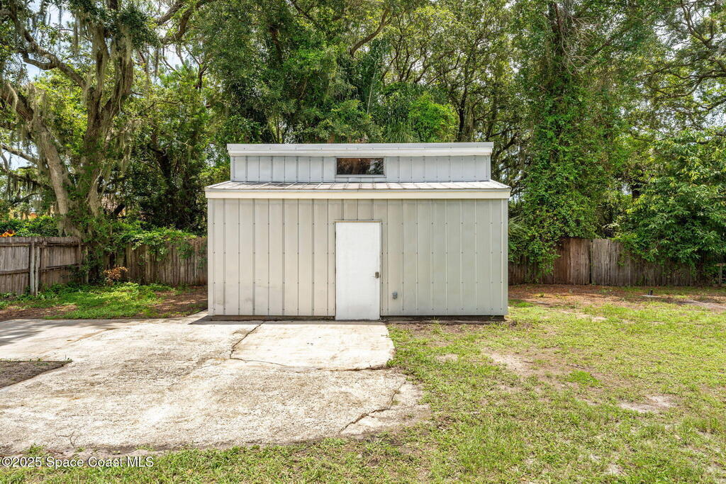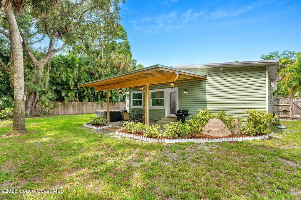 Beautifully renovated and fully furnished, this charming 4BD/2BA home rests on a spacious .52-acre lot w/ the unique opportunity to split the lot and construct an additional residence. Surveys on hand and city approval on setbacks! Loaded w/ updates, Incld crown molding, hardwood pine floors, and impact-rated windows! White cabinetry, SS appliances-2 yrs old, a gas cooktop & a stylish tile backsplash adorn the spacious kitchen. Updated Bathrooms! This split floor plan features a generous back patio, complete w/ a hot tub, perfect for unwinding. The fully fenced yard w/ natural foliage, space for RV/boat parking, plus a large metal shed w/ electricity. Major systems are updated w/ a Nest thermostat, Metal Roof- 2021, HVAC-2025, & New Septic System- 2025. No rental restrictions & the potential to separate the lots and build another home is HUGE! Prime Melbourne location minutes to I-95, Melbourne Int Airport, major employers & beaches! Move-in ready!