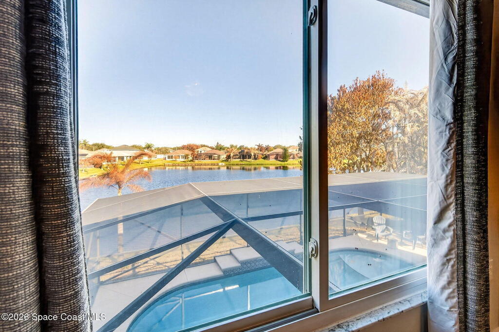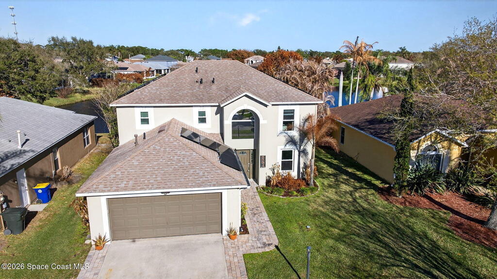 Lakefront Paradise with Pool in Ashwood Lake Community ! This impressive 4-bedroom, with a bonus room & 3-bathroom home features over 2250 square feet of living space in the Viera/Rockledge area, complete with a 2-car garage and screened patio, totaling over 2700 square feet. The entrance foyer boasts high ceilings, leading to spacious separate living and family rooms. The island kitchen seamlessly connects to the family room and screened back porch, overlooking the serene lake. Key features includes PAID SOLAR PANELS worth $37,000, IMPACT WINDOWS, a recently installed SALT WATER POOL at 2022 , 2019 ROOF, newer fresh exterior painting, 2021 WATER HEATER& TESLA charger in garage. The master suite offers a relaxing garden tub and separate shower. Ideally situated near beaches, Cape Canaveral, and Melbourne, within 5 minutes of The Avenues shopping, and under an hour from two international airports and Orlando attractions. This extraordinary property will sell quickly, don't miss out!