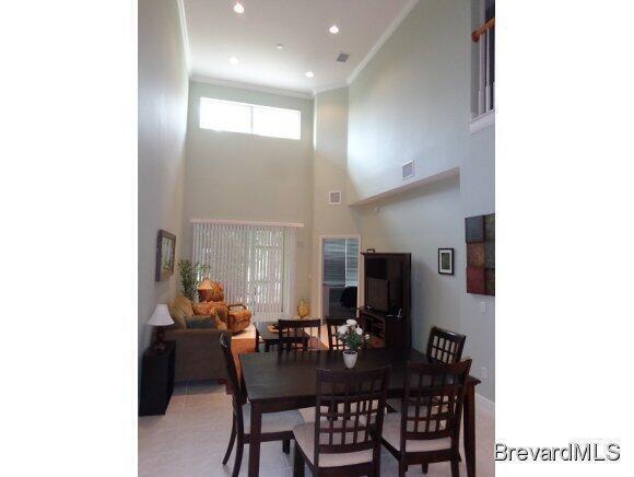 Available March 1! Prof. Photos' Coming! Beachside Townhome with plush landscaping, newly screened private porch & 2 car garage. A nicely appointed 4 bedroom, 3 1/2 bath fully furnished. New Vinyl Plank Flooring through the kitchen & living space. One Year new Stylish Living Room Furniture: New sofa set; love seat, sofa, recliner, side tables, coffee table, lamps!. Upgraded faucets recently installed. Great location for a vacation, relocation or corporate rental. 2 of the bedrooms are full suites. One primary suite is on the first floor with King bed and one on the second floor. One guest room has a queen bed. One is an office type set up. A bed can be added at tenants request. All the comforts of home and more! Washer & Dryer. 2 car garage. Plus a Clubhouse with heated pool. GREAT location to the KSC, 528 to Orlando and the of course, the beach. Public Beach access located East of Holiday Inn. Pets will be considered. Pricing packages available for easy corporate rental