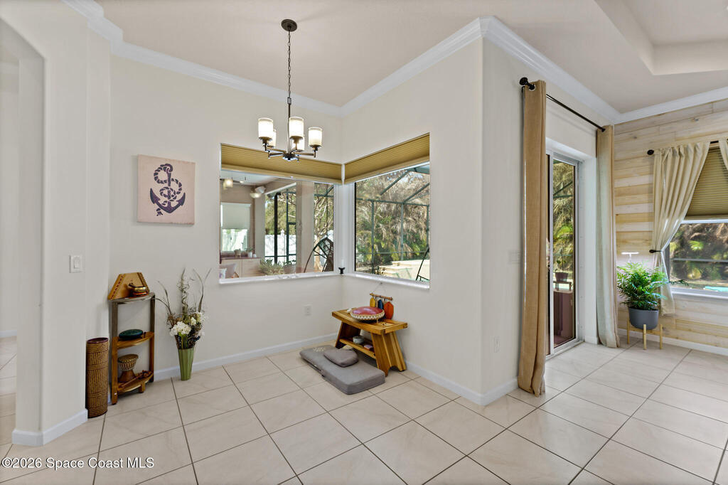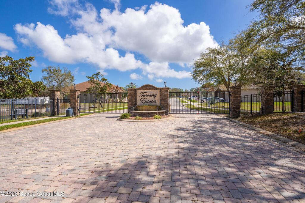 Welcome to Tuscany Estates, one of Palm Bay's most desirable gated communities. This beautifully appointed 4-bedroom plus office, 3-bath, single-story home offers over 2,600 sq ft of thoughtfully designed living space on an oversized lot at the end of a quiet street. Inside, the open floor plan features soaring ceilings, tray accents, crown molding, shiplap details, and rich wood flooring, creating a refined yet welcoming atmosphere. The kitchen flows seamlessly into the main living areas, ideal for entertaining and everyday living, while the split-bedroom layout provides excellent privacy, including a separate guest suite. Step outside to a private resort-style backyard featuring a saltwater, gas-heated pool and spa with waterfall features, LED lighting, and a fully equipped outdoor summer kitchen, all within a screened lanai. Additional highlights include a 3-car garage, fully fenced yard, storm shutters, water softener, new gutters, and updated exterior paint. Ideally located just