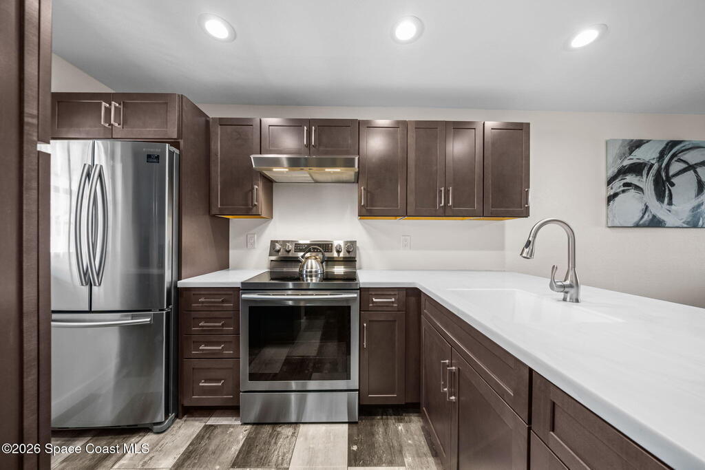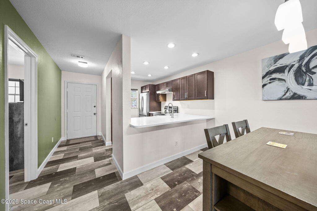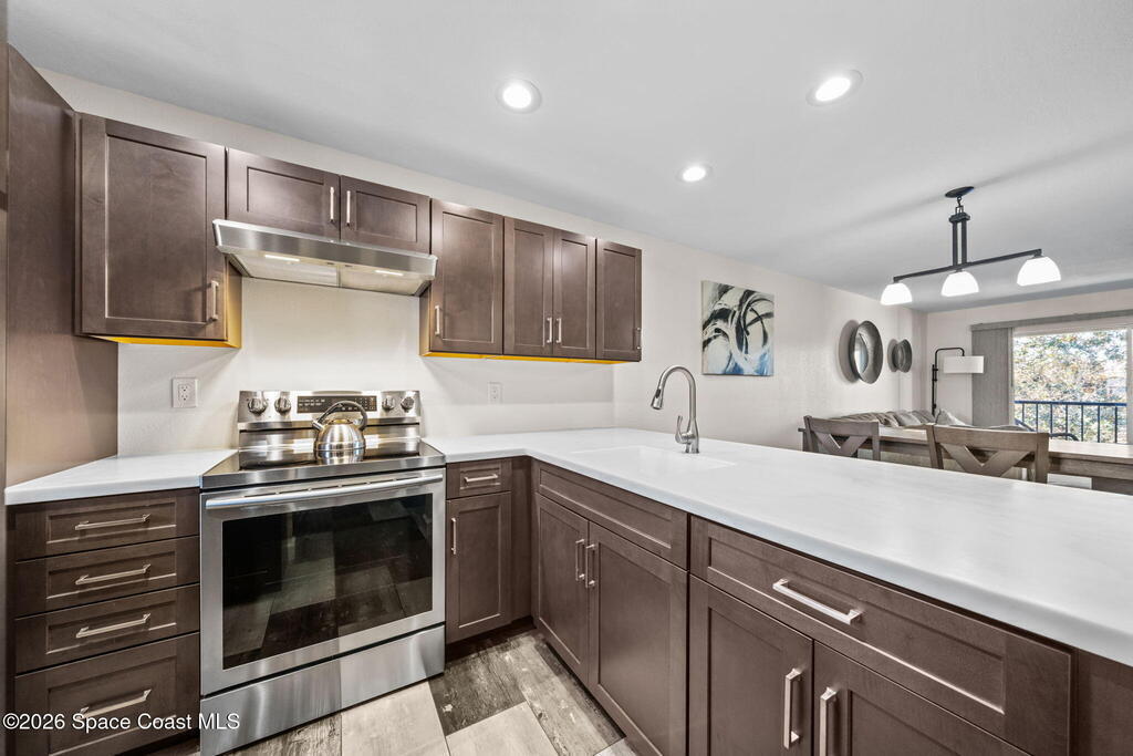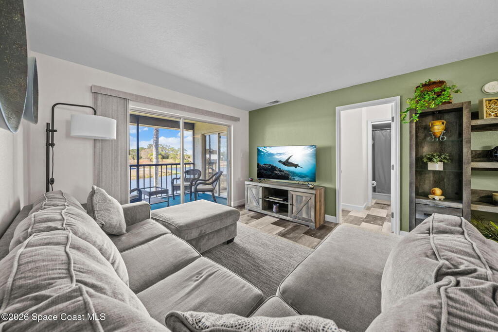 Welcome to 1900 Knox McRae Drive, Unit 210H, in Titusville, Florida--immaculate maintained second-floor condo offering comfort, style, and convenience. This freshly painted 2-bedroom, 2-bathroom home features a desirable open floor plan with beautiful vinyl plank flooring throughout, creating a modern feel.The remodeled kitchen is a standout, showcasing upgraded cabinetry, corrian countertops, a breakfast bar, and an island design--perfect for both everyday living and entertaining. New stainless steel appliances Home also features updated doors, fixtures, and bathroom vanities that add a fresh, contemporary touch throughout the home.Step outside to the screened back balcony, which includes additional storage and overlooks a peaceful pond--an ideal spot to relax and unwind. The AC system is approximately 6 years old. The HOA fee of $400 per month includes water, trash, and cable for added convenience and value. Ideally located in the heart of Titusville surrounded by everything.