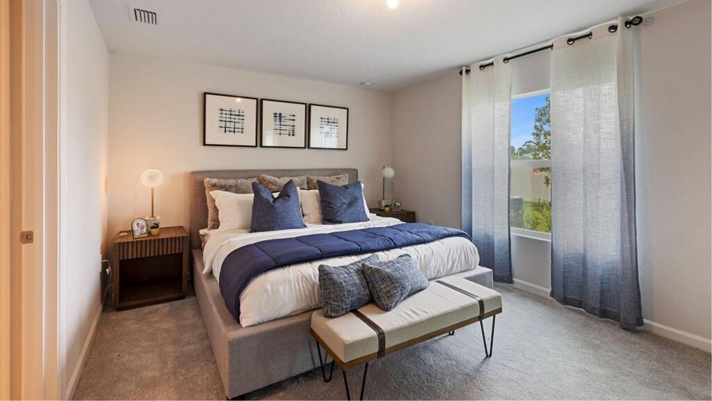 This new single-story home features a smart layout designed for ease-of-living. An open-concept layout connects the well-equipped kitchen, breakfast nook and family room, which extends to the covered lanai . On the opposite side of the home are two secondary bedrooms and a spacious owner's suite with a full-sized bathroom. At the front is a convenient two-car garage.Prices, dimensions and features may vary and are subject to change. Photos are for illustrative purposes only.