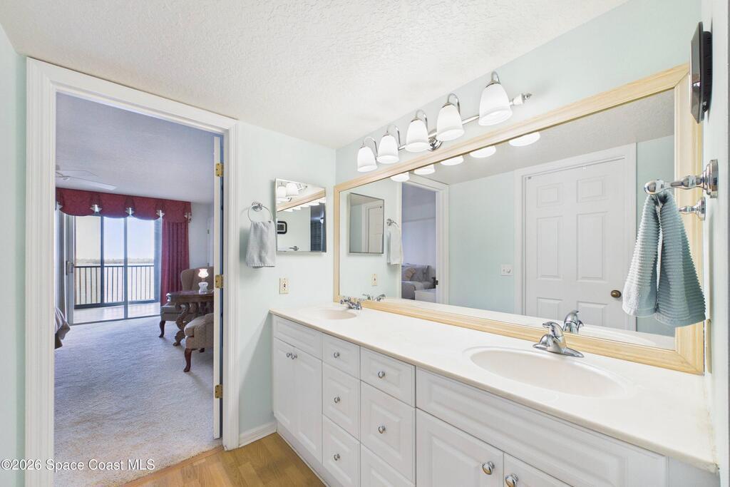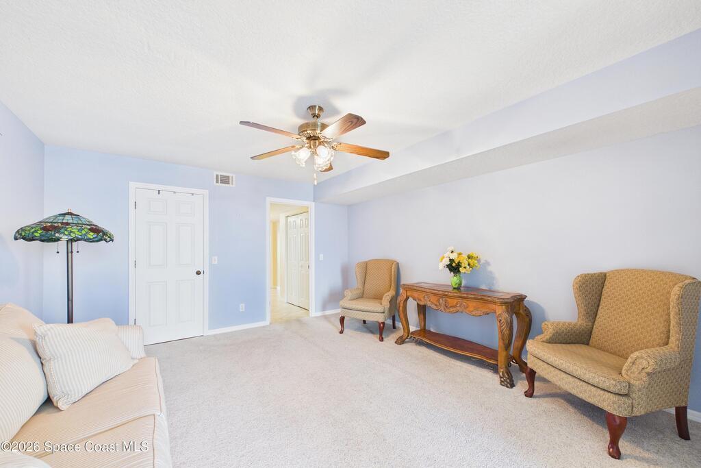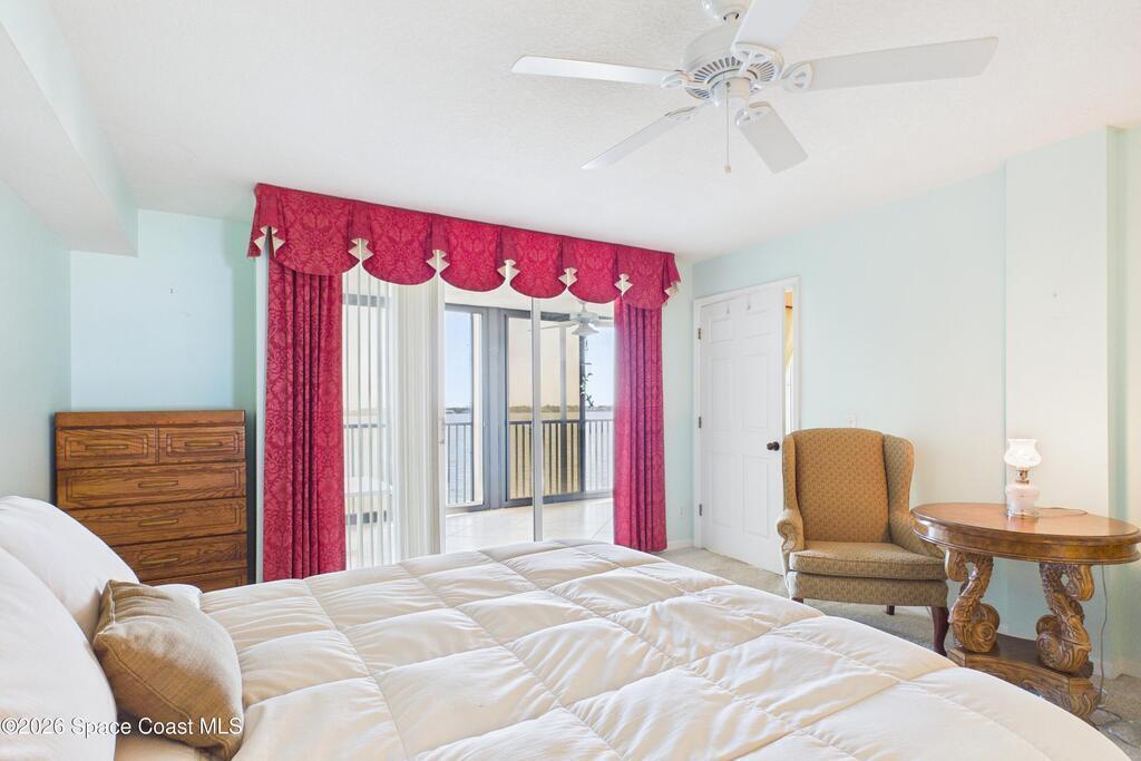 Experience elevated waterfront living in this 5th-floor residence overlooking open water on Sykes Creek. Located in a gated community, this spacious 3-bedroom, 2-bath condo offers over 1,900 sq ft of breathtaking views. Step inside a split-bedroom floor plan, with your primary suite opening directly to the water! The primary bath features a large walk-in closet, a beautiful garden tub, and a separate shower. Two large guest bedrooms with one offering an additional oversized walk-in closet. Relax on your private screened balcony with your front-row seat to dolphins and manatees playing below, and rocket launches illuminating the sky. Located in the highly sought-after Merritt Towers, residents enjoy: two sparkling pools & hot tub, clubhouse with full kitchen, library & sauna, dog park, tennis & pickle-ball courts. Milestone inspections have been completed with flying colors! Fantastic location --- near new hospital, shopping, dining, and easy access to Port Canaveral and Cocoa Beach!!