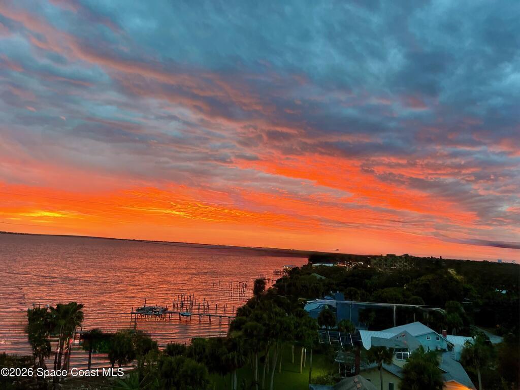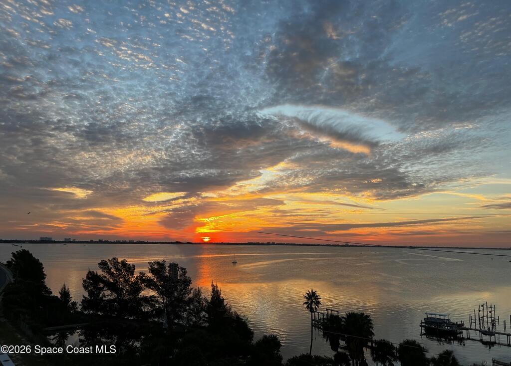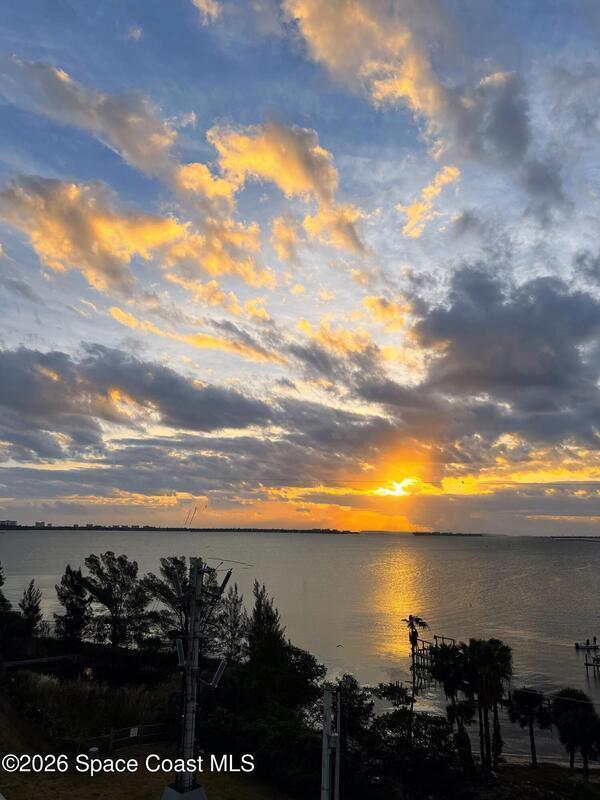 Experience panoramic river views with breathtaking sunrises & magnificent sunsets. This luxury corner unit is located on the 7th floor with three bedrooms & three bathrooms. An open floor plan & a spacious chef's kitchen. All located in a secure building with garage parking for 2 cars. Resort living with pool & fitness center. Walking distance to Downtown Eau Gallie Square Park, restaurants, shops and more!