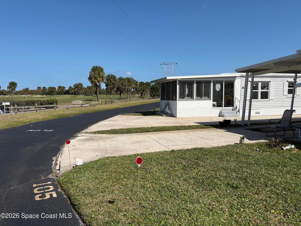 Owner financing possible on this Beautifully renovated and meticulously kept Beachside home in a fabulous location, directly across the street from Spessard Holland Golf Course and just steps to the Indian River!! Spacious, bright open floor plan leads to a fully enclosed front porch, surrounded by Acrylic windows that embrace stunning views of the beautifully landscaped golf course, pond and Indian river. Sheet rock insulation, new windows & storm shutters throughout, new sub floor (3/4 inch) and porcelain tile. Membrane 50 yr. roof, coated every 5 years. New remodeled kitchen, all new plumbing, newer A/C & water heater. Leisure Living Estates is a 55+ Ocean to riverfront community unlike any other.The quaint streets are private and welcoming. This amazing community offers a clubhouse, deeded beach/river access & fishing off the pier! Enjoy low cost, carefree beachside living with just $141 monthly HOA fees that include cable/internet, wifi & basic lawn care service. YOU OWN THE LAND!
