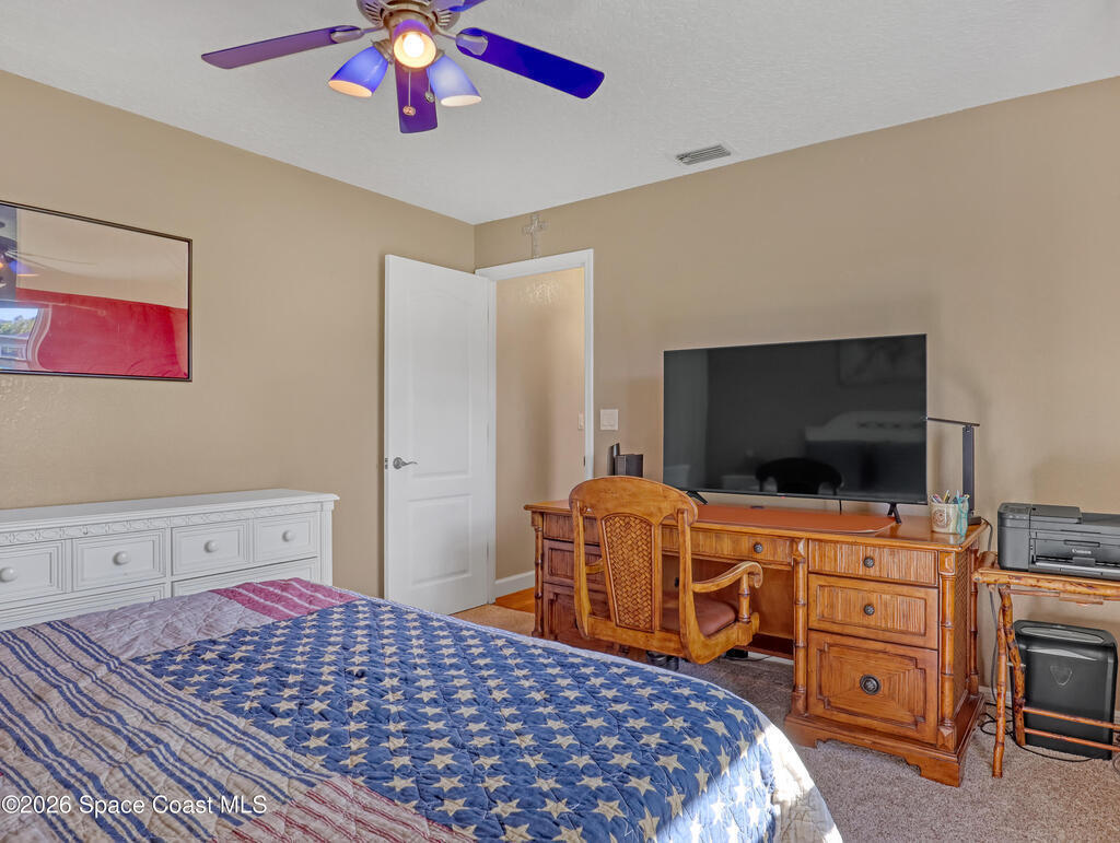 There's a nice feel to this Merritt Island pool home -- comfortable, functional, and ready to enjoy. The kitchen anchors the interior with granite counters and stainless appliances, while a mix of hard-surface and carpet flooring keeps everyday living practical. Helpful upgrades include pull-out shelving, Ring doorbell, Nest thermostat, new double-paned windows (2025), and full storm shutters.The screened lanai surrounds a recently resurfaced, solar-heated pool. An outdoor shower helps keep the inside dry, the side deck is great for grilling or casual dinners, and a firepit creates a relaxing gathering space. A storage shed adds extra room for tools and gear.Behind the home, the canal offers kayak and canoe access, and the yard features producing fruit trees -- mango, star fruit, jackfruit, lemon, and avocado.No HOA.
