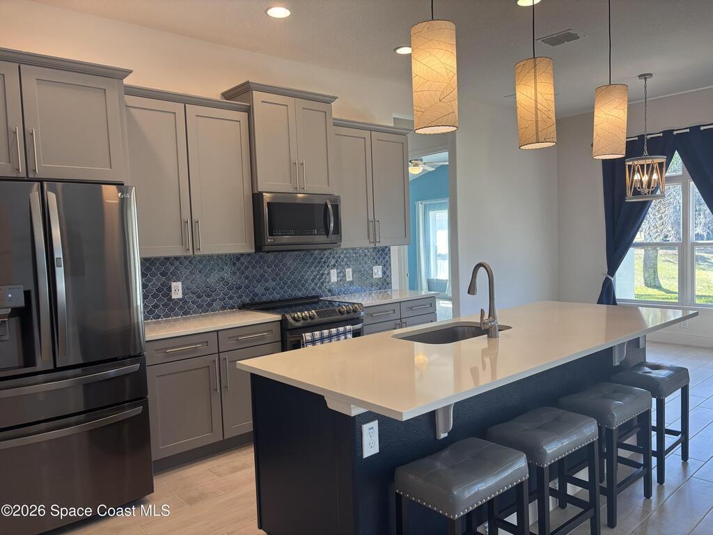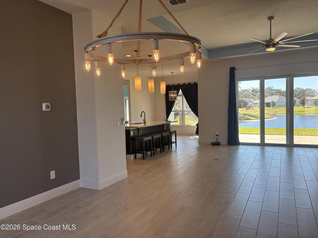 Beautiful lakefront property located in the prestigious gated community of County Club Estates ready and available for new tenants. This house screams luxury. Gorgeous kitchen cabinets, countertops and appliances give that high end feeling. Plenty of natural light, tiled flooring, high ceilings and a fantastic location set this home apart. Near major employers, entertainment, shopping, dining, access to I95 and beaches gives all living conveniences. Tired of high electric bills? This house offers electric solar panels with an average monthly bill of $50. Sit back and relax taking in the lake views from the truss covered porch. Yard care included in rent. Don't miss out. Make appointment today.