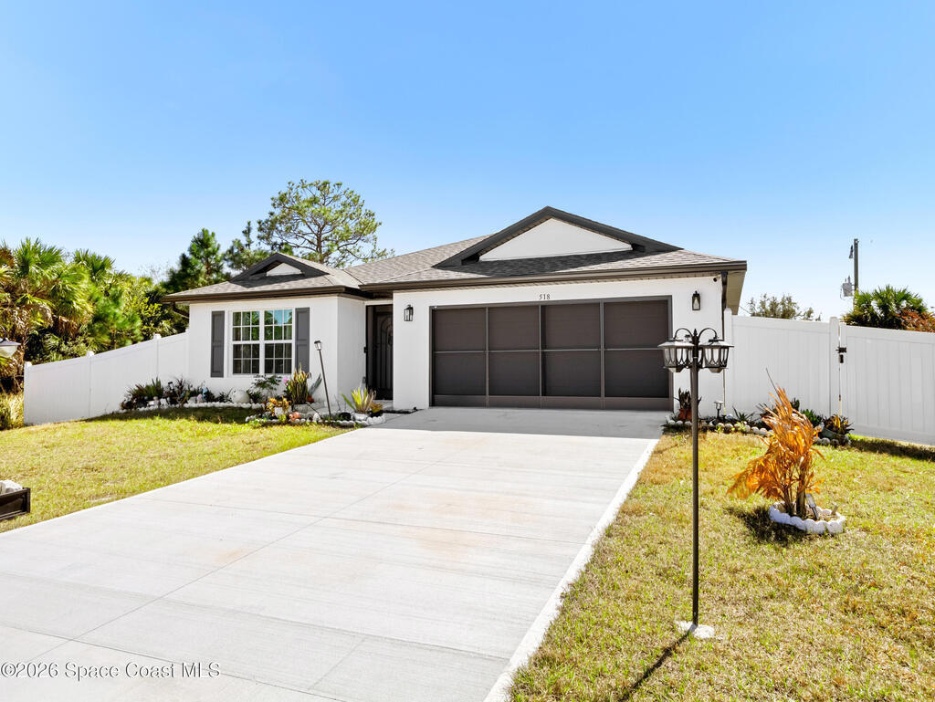 Welcome to this beautifully maintained 3-bedroom, 2-bath home offering 1,535 square feet of comfortable living space. Enjoy peaceful mornings in the screened front entry and unwind in the screened back patio -- perfect for year-round Florida living. The garage is equipped with a privacy screen for added functionality and airflow. A fully fenced yard provides privacy and space to relax or entertain. This home offers both comfort and convenience -- ready for its next tenant!