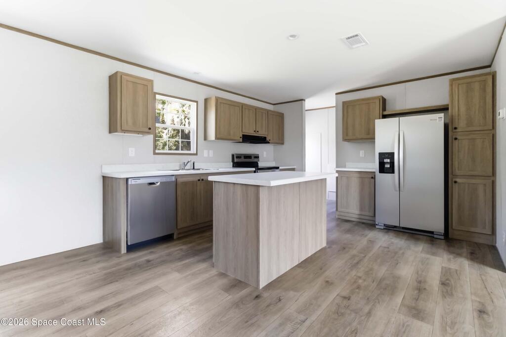 Looking for a BRAND NEW HOUSE?...here it is! Brand new in 2026. Brand new AC, septic system, roof, water heater, double-pane windows, etc.. everything is BRAND NEW! Spacious house that is almost 1,500 sqft, with 3 bedrooms, 2 bathrooms, and dining area. Large kitchen includes UPGRADED STAINLESS STEEL WHIRLPOOL APPLIANCES, an ISLAND with overhang for casual dining, QUARTZ-LOOK countertops, and LOTS OF CABINETS. The SHAKER-STYLE CABINETS have warm tones to match modern kitchen trends. Tons of NATURAL LIGHT and WOOD-LOOK FLOORING throughout. Each Bedroom has a large WALK-IN CLOSET. INDOOR LAUNDRY ROOM. Very PRIVATE back yard. No HOA and on CITY WATER. Great CENTRAL LOCATION and only minutes to the BEACH, 35 mins to Orlando Int'l Airport, and 45 mins to Orlando.