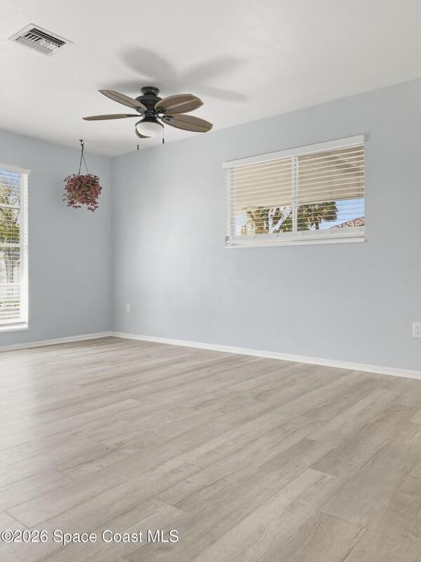 Charming 2 bedroom, 2 bathroom home with extensive 2023 upgrades and modern interior improvements, located near water access and nature preserves.Major updates completed in 2023 include a new roof, new HVAC system, new water heater, updated electrical and plumbing, providing durability, efficiency, and long-term reliability. These improvements address key structural and mechanical components of the home.The interior features a fully updated kitchen with contemporary finishes, along with renovated primary and guest bathrooms. The split-bedroom layout enhances privacy and functional living space.Fully functional irrigation system for the front and backyard on a timer on a well. And fully fenced backyard is lined with privacy hedges, creating a private outdoor setting with room for pets, gardening, or outdoor enjoyment. Located minutes from Turkey Creek Sanctuary with hiking and kayaking access, and blocks from a public boat launch