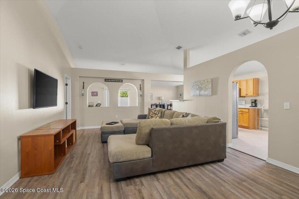 Welcome home to this BEAUTIFULLY MAINTAINED 3-bedroom, 2-bath gem offering comfort, style, and an unbeatable location. From the moment you step inside, you'll be greeted by soaring VAULTED CEILINGS that create a bright, open feel throughout the main living space--perfect for both relaxing evenings and entertaining guests.The thoughtfully designed floor plan features SPACIOUS BEDROOMS, including a private primary suite with its own full bath. The kitchen flows seamlessly into the living and dining areas, creating an inviting space for everyday living and gatherings.Step outside and fall in love with the LARGE LANAI--ideal for morning coffee, outdoor dining, or hosting friends year-round. The fully FENCED BACKYARD provides added privacy and plenty of room for pets, play, or gardening. With a BRAND-NEW ROOF, you can move in with peace of mind knowing a major upgrade has already been completed. Located just minutes from the vibrant shops and waterfront dining of EGAD. New sod coming soon