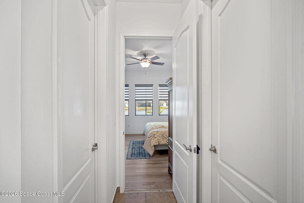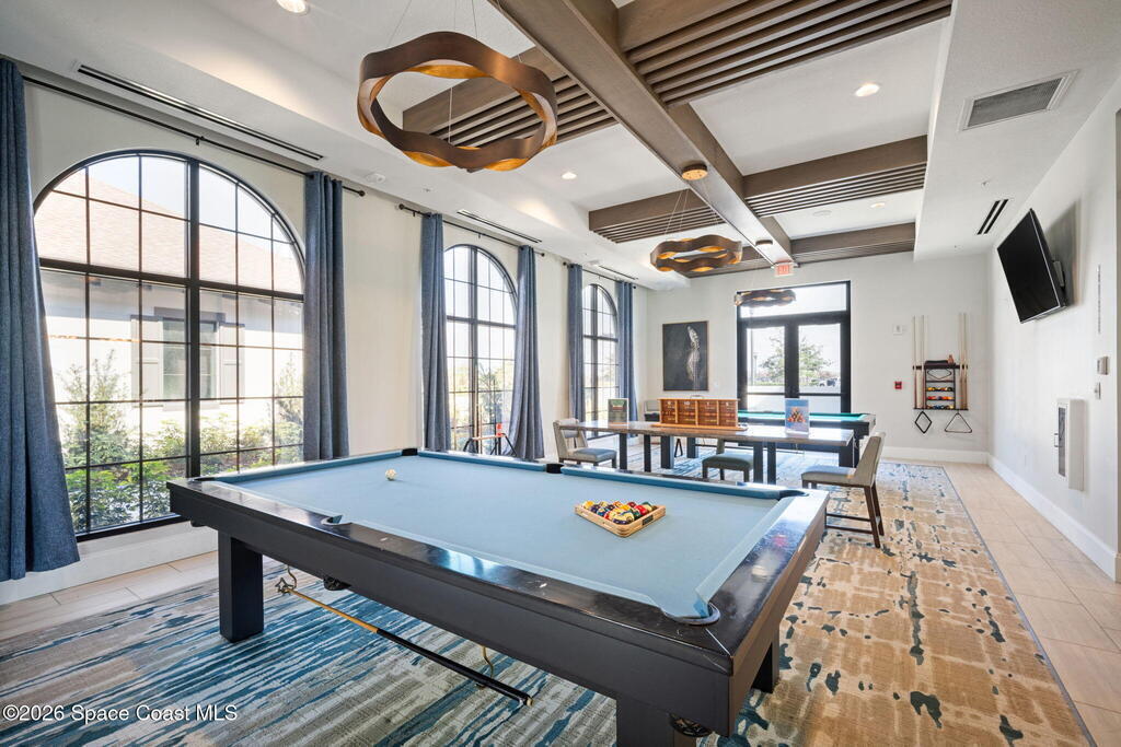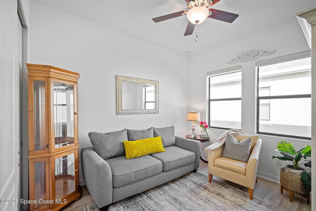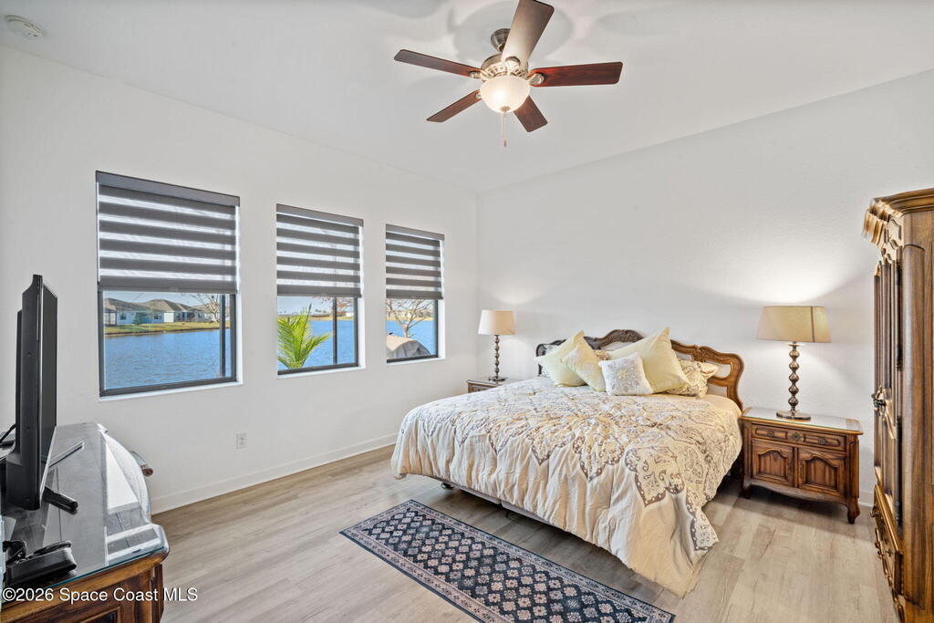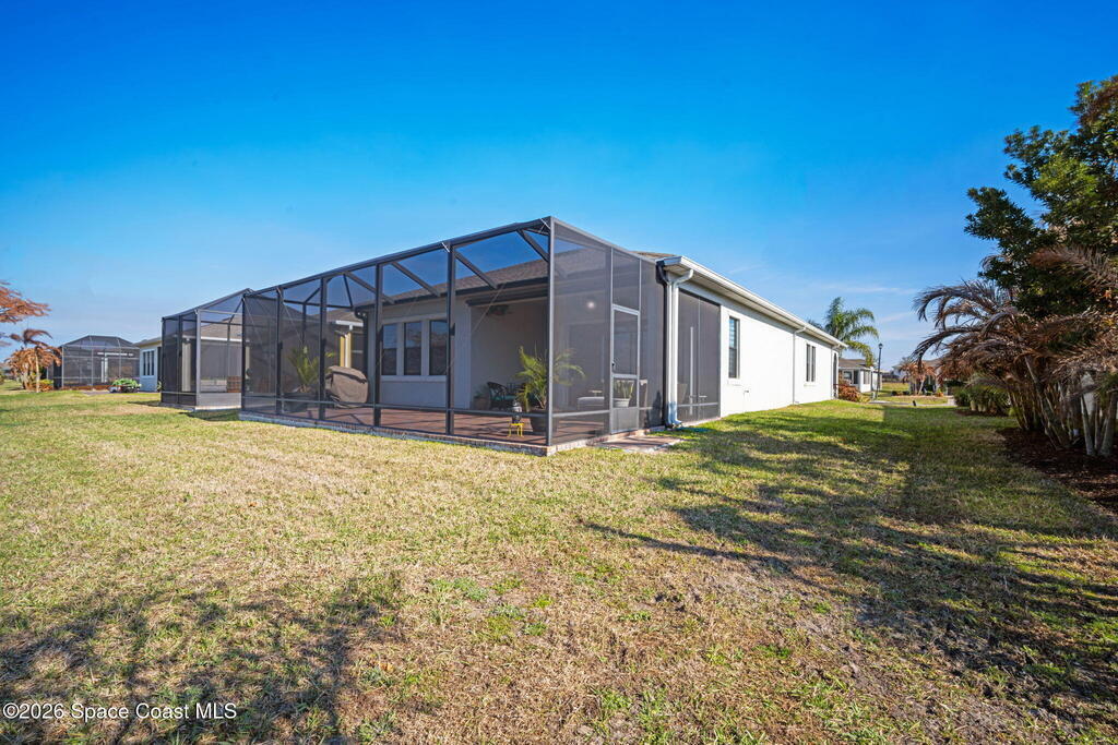 Welcome to Bridgewater at Viera, a premier 55+ gated community! This upgraded Nautilus one-story Model offers maintenance-free living with long POND VIEWS and an extended screened lanai.Inside features include a flex area as soon as you walk in, 10-ft ceilings, 8-ft doors, crown molding, and pendant lighting. The kitchen features premium granite countertops, backsplash, a large island, stainless steel appliances, and a walk-in pantry.The primary suite offers dual sinks, a walk-in tile shower, and dual walk-in closets.Enjoy resort-style amenities including a pool, indoor poolside kitchen, fitness center w/ locker rooms and massage rooms, yoga/aerobics room, movie theater, pickleball, tennis, library, art studio/craft room, coffee cafe lounge, amphitheater entertainment lawn, billiards room, bocce ball, pickleball, tennis courts and walking paths--all in a golf-cart-friendly community.Come see why Bridgewater is the perfect place for 55+ living!
