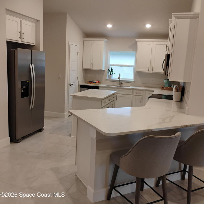 $1,000 deposit! Closing costs paid with preferred lender. Welcome to this stunning 4-bedroom, 2-bath home where style and comfort combine to offer a bright, open, split layout perfect for relaxing or entertaining. The heart of the home is the kitchen, featuring sleek stainless steel appliances, ample counter space, large island, and a large pantry-perfect for culinary adventures and entertaining. The open living and dining areas extend to a spacious covered porch, inviting you to soak in Florida's sunshine and breezes. The split-bedroom layout ensures privacy, with a serene owner's suite that boasts dual vanities, tiled floors, separate shower, a soaking tub, and a private water closet.