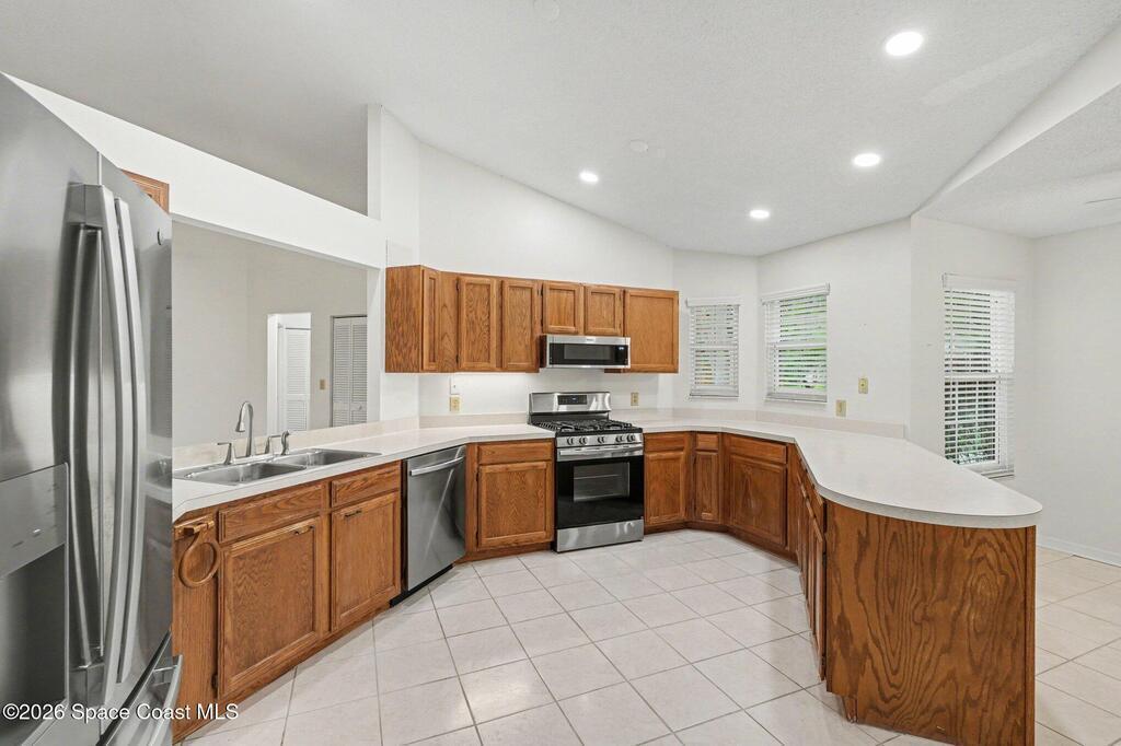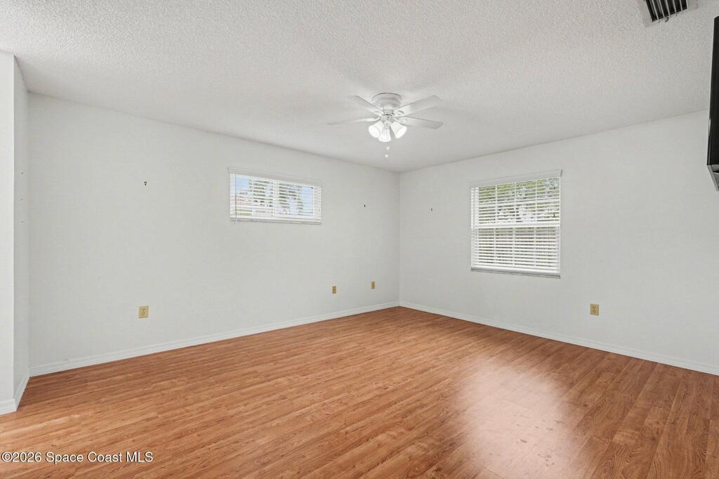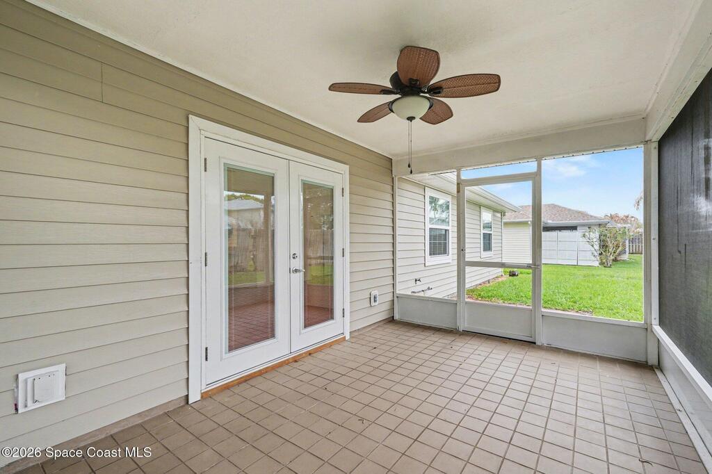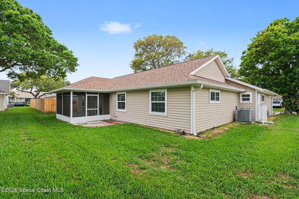 Welcome to this beautifully maintained home in the sought-after Greenbriar Village community of Melbourne. This spacious open floor plan features cathedral ceilings, a desirable split-bedroom layout, laminate and tile flooring throughout. The kitchen offers new stainless steel appliances, generous counter space, and ample storage. The stove and dryer are both powered by natural gas. The primary suite includes a large walk-in closet and a spacious vanity area. Natural light fills the living room and flows seamlessly to the screened-in lanai, where a dedicated natural gas hookup makes outdoor grilling simple and convenient. The two-car garage offers more than just parking -- a portion has been enclosed and air-conditioned, creating the perfect workshop, craft room, or hobby space. Major upgrades completed in 2020 include a new roof, impact windows, fresh interior paint, new gutters and downspouts, gutter guards, and a transferable termite bond. Located close to everything in Melbourne.