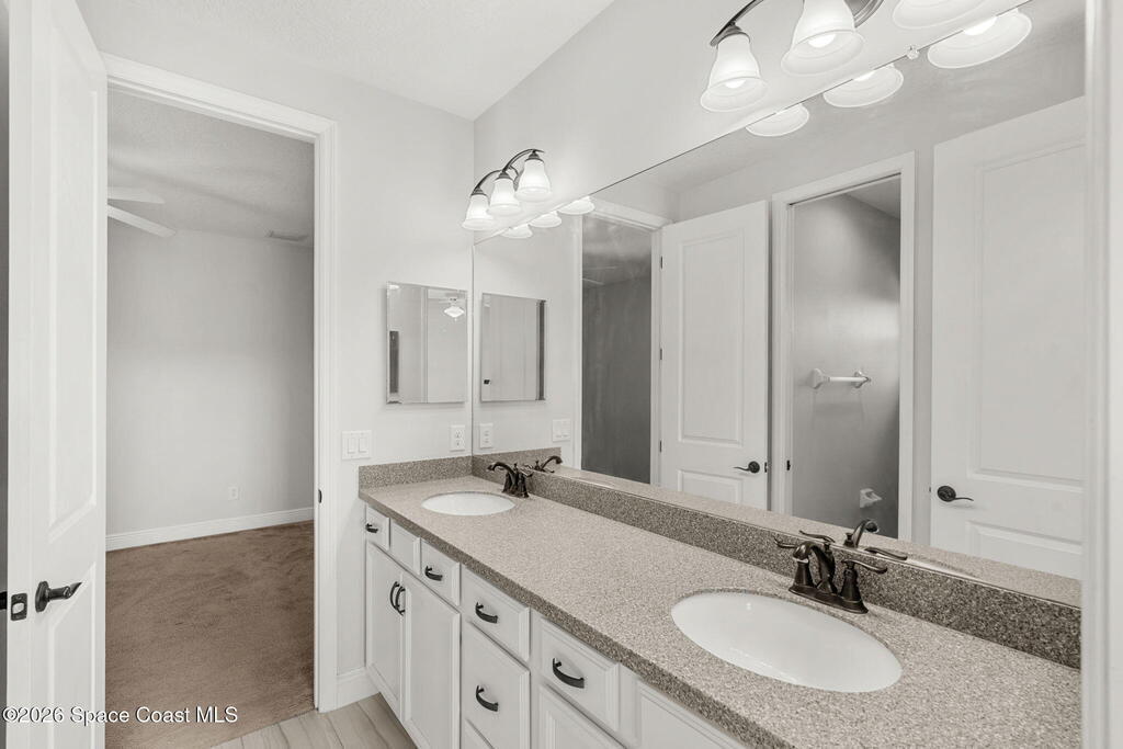 Morning light spills across the water as you step out into your private paver courtyard, coffee in hand, the day already moving at an easier pace. From here, life unfolds on foot or by golf cart. A quick stroll to the Avenue Viera for lunch, shopping, or an impromptu dinner, afternoons teeing off at Duran Golf just minutes away, & evening walks along tree-lined paths as the sun dips low. Inside, wood-look tile grounds the living spaces w/ a relaxed, coastal-modern feel, while the kitchen anchors daily life w/ upgraded white cabinetry, granite counters, SS appliances, & a timeless subway backsplash ready for casual breakfasts or weekend entertaining. 3 bedrooms + a bonus room flex for guests, work, or hobbies, dual AC's, complemented by a 2-car garage & a dedicated golf cart garage that fits the rhythm of the community. Arrivas Village elevates the everyday w/ a resort-style pool, park & playground, & winding bike & jogging trails that make staying active feel effortless.