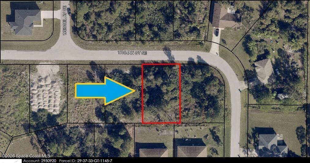 Here is a 0.23 acre buildable single family residential lot [Rs-2 zoning] available in Port Malabar Unit #23. Nicely located in the SE section near the Bayside Lakes Subdivision, this property is just 4.6 miles -11 minutes- to Publix Shopping, 5.9 miles -11 minutes- to Bayside High and Westside Elementary Schools, and just 15.6 miles - 1/2 hour - from the beaches at Indialantic. From Exit #173 of I-95 go east on Malabar Road SE. Turn right on Babcock Street and proceed south for 5.7 miles. Turn right on Cogan Drive and left Wessel Avenue SE and left on Trojan Avenue SE. The lot will be on the right,