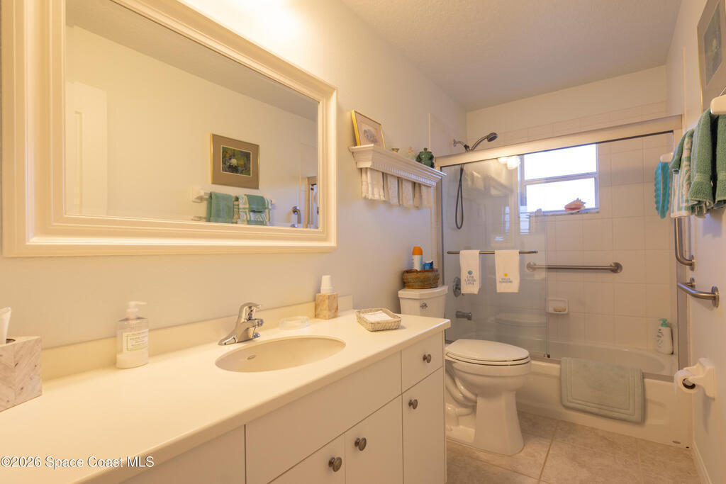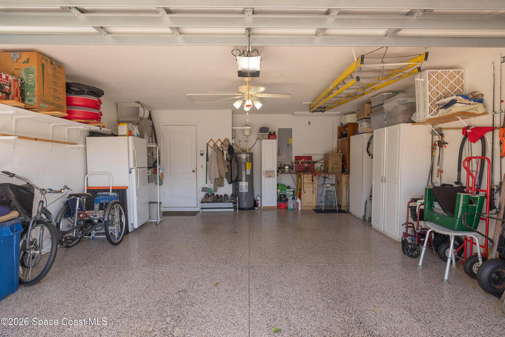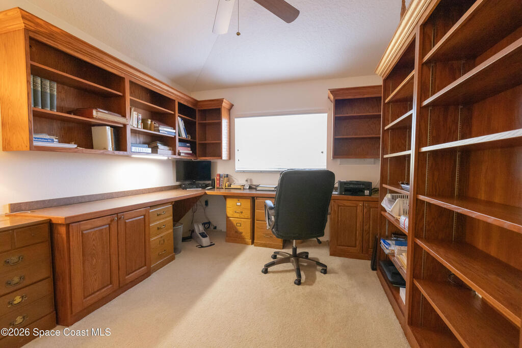 Opportunity is knocking in Pine Creek! This sought-after floor plan offers comfort, security, and thoughtful updates throughout. A brand-new 2024 roof provides peace of mind, while the 6.5kW generator ensures year-round preparedness. Inside, the dining room is accented with classic chair rail detail, and the third-bedroom office features built-in desk and cabinetry. Handicap-accessible baths include Corian countertops for both style and durability. The enclosed Florida room adds bright, flexible living space perfect for relaxing or entertaining. The garage shines with a sharp epoxy floor finish, and both the driveway and back patio have been freshly refinished. Located in one of Brevard's most desirable gated 55+ communities, this home offers flexibility, function, and lasting value. Schedule your private showing today.