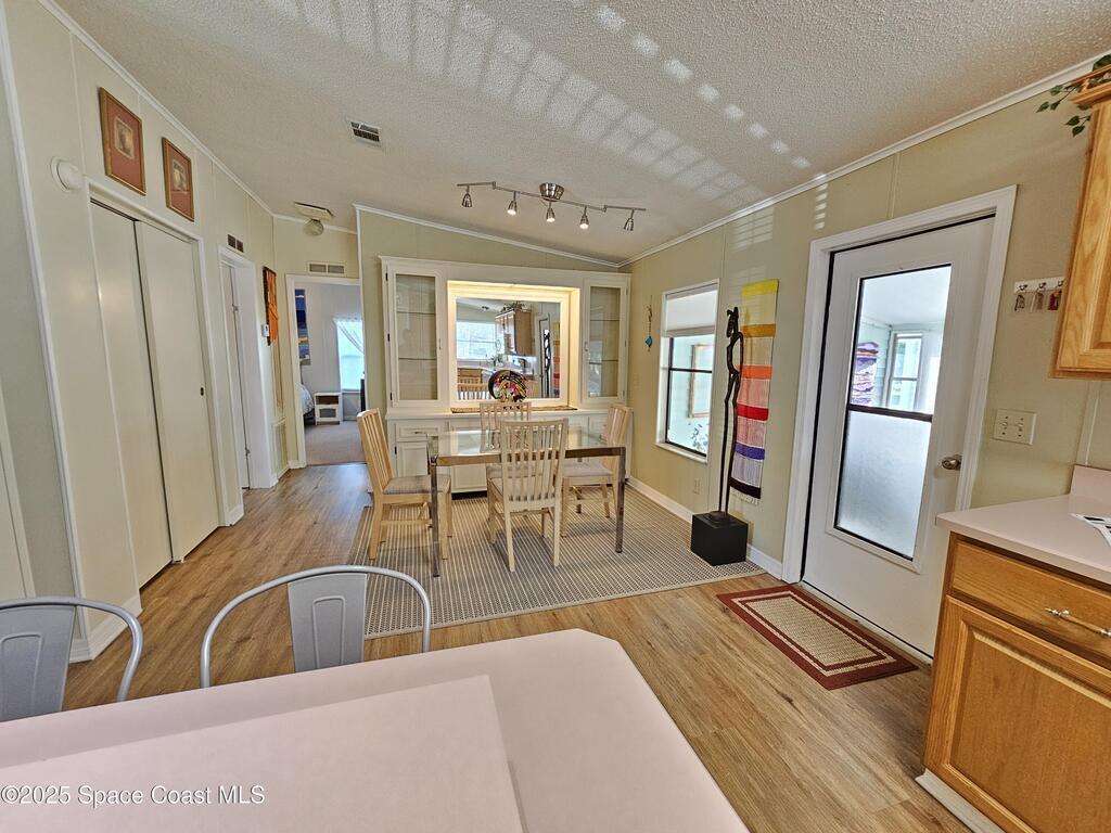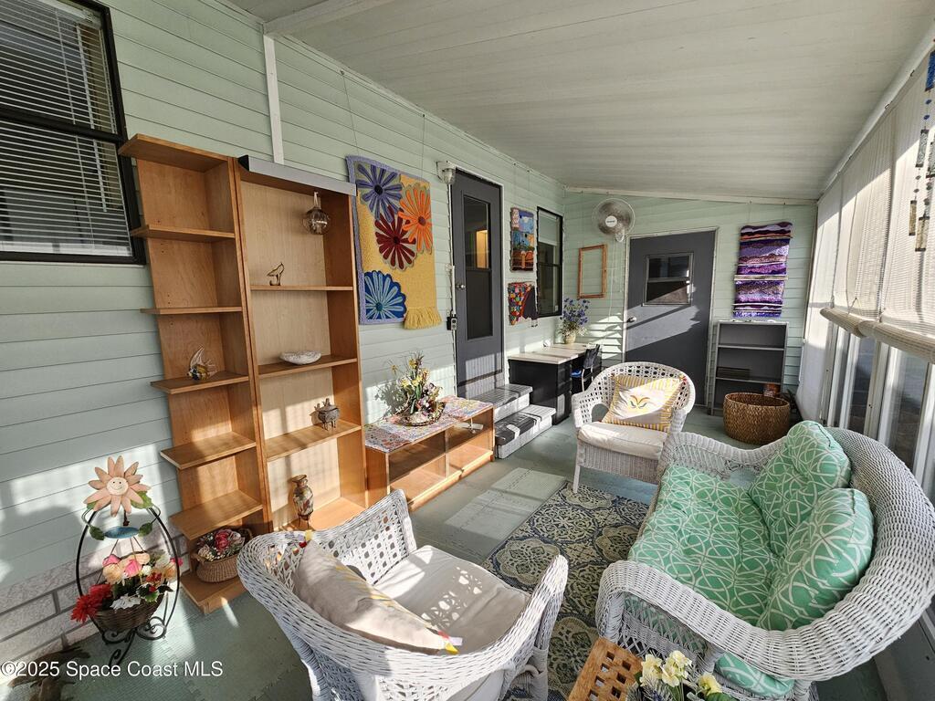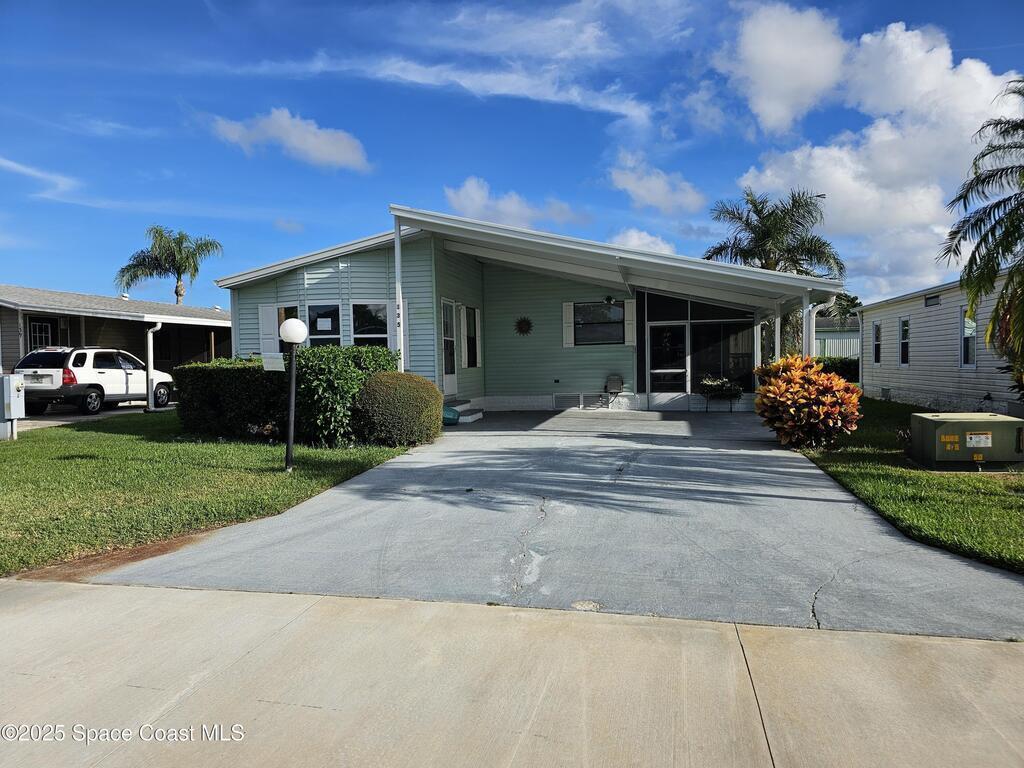Fully furnished and move-in ready, this home is available in the desirable 55+ gated community of Island Lakes, just over the barge. Known for its quiet atmosphere and welcoming neighbors, the community offers a pool, clubhouse, and regular events. The home features tasteful, unique decor, LVP flooring throughout with carpeted bedrooms, a screened side patio, and a two-car carport. A washer and dryer are conveniently located in the storage room. Enjoy being just 10 minutes from the beach, the Space Center, shopping, dining, and more plus, watch rocket launches from your own yard. One mature pet considered with additional fees.