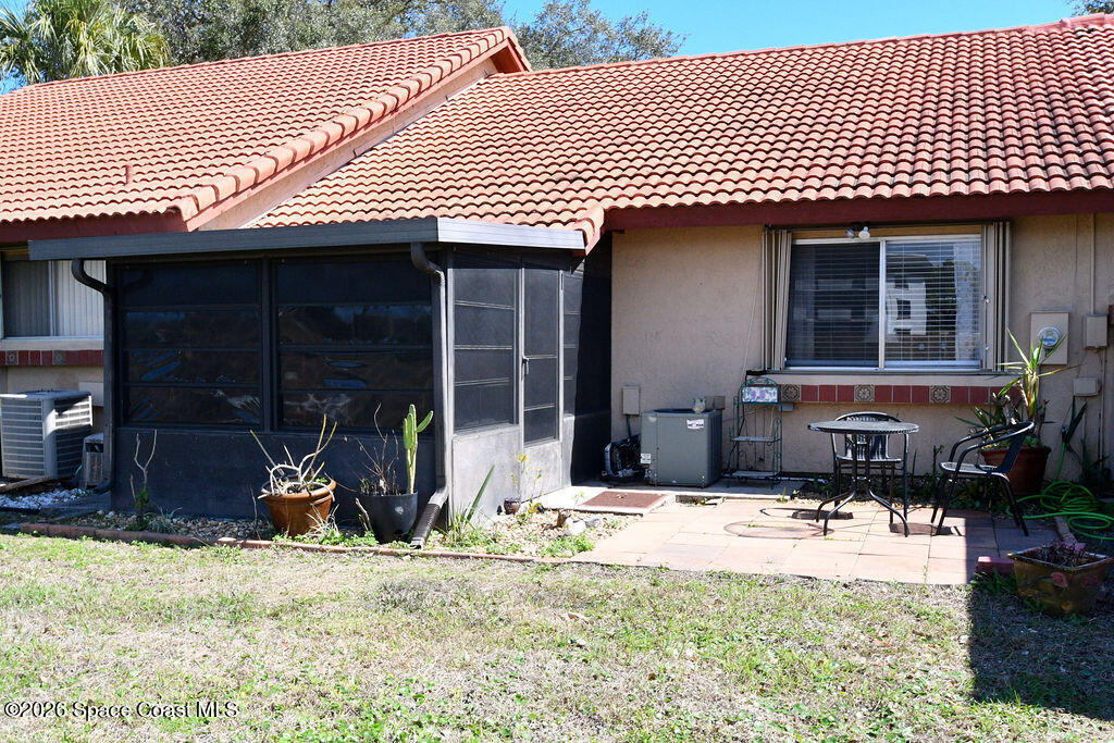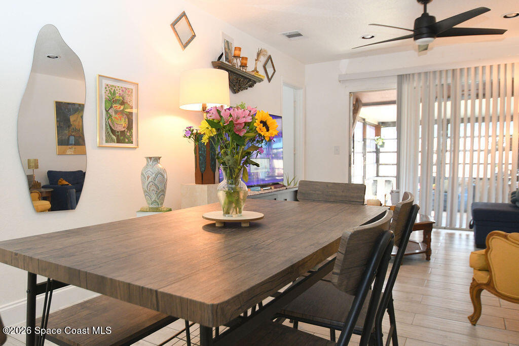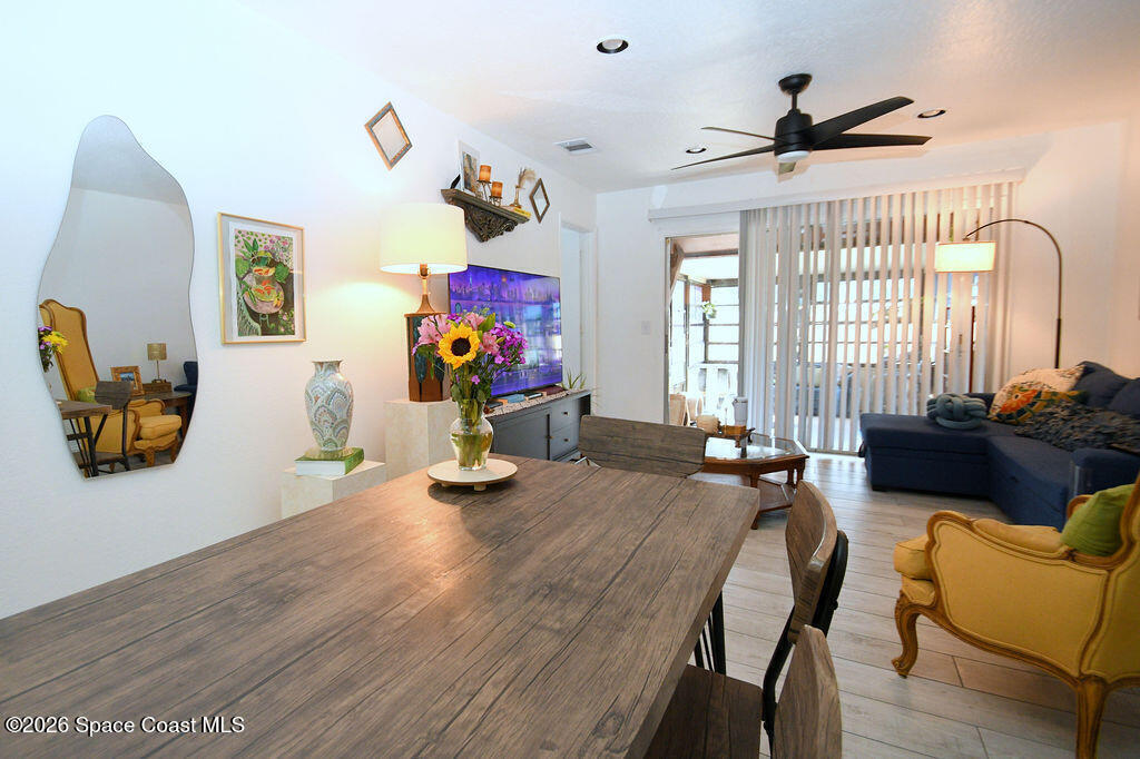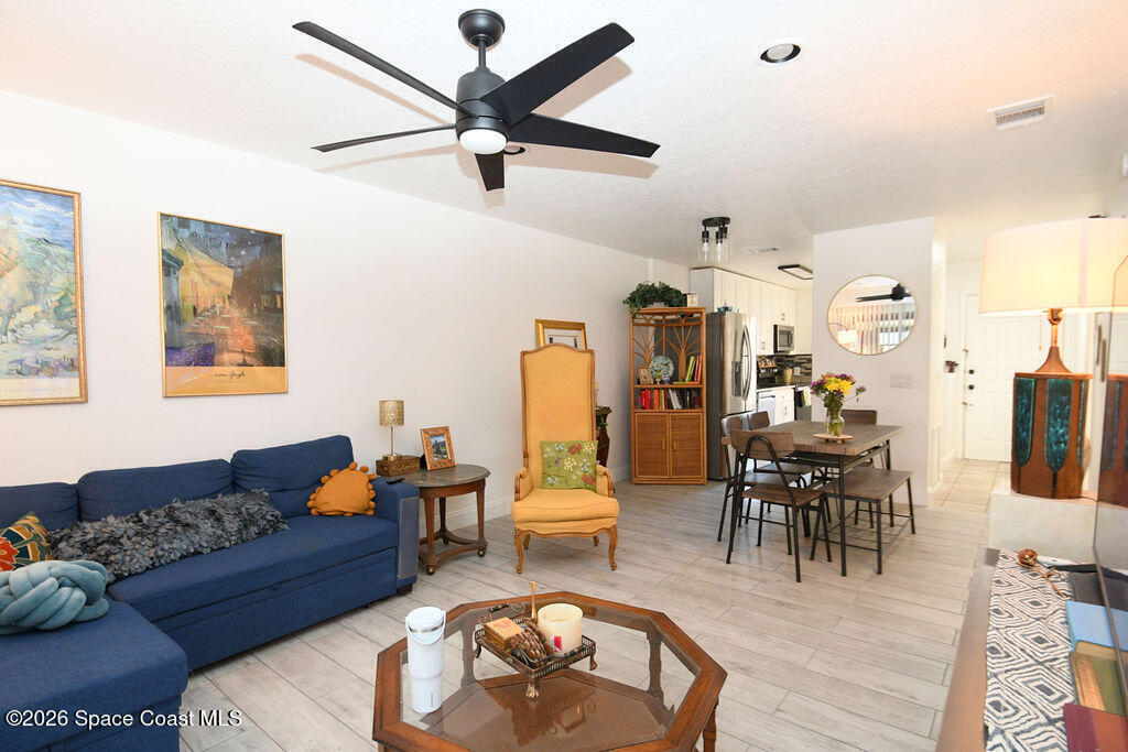 Spacious and beautifully updated 2-bedroom townhome in the desirable Country Club Vista community. This light-filled home features wood-look tile flooring throughout, an open living and dining layout. The primary bedroom offers generous space and natural light, while the screened patio provides a peaceful outdoor retreat.Enjoy resort-style amenities including a community pool, tennis courts, clubhouse, and scenic pond views. Residents love the friendly atmosphere with regular social activities like weekly game nights, book club, and potluck gatherings. Low HOA and convenient location close to shopping, dining, and just minutes to the river and beaches. Tenant in place will vacate at closing.