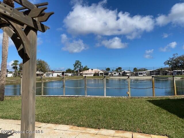 This beautifully updated home is located with lake views and features covered parking for a Class A motorhome. Move in and enjoy Florida resort living, year round or seasonally. The outdoor space features a pergola and paved patio with a sea wall providing relaxing views of the lake and fountain. The house has new everything including: new cabinets, appliances, tile backsplash and shower, washer/dryer, ceiling fans, and paint. Fresh and ready for you to enjoy. New roof and AC in 2024. Amenities include; clubhouse, heated pool, pickleball, tennis, shuffleboard, bocce, and gated entry closes after 6 pm. Executive golf course and watch the rocket launches from your own front yard. Close to airports, beaches, theme parks, shopping and restaurants.