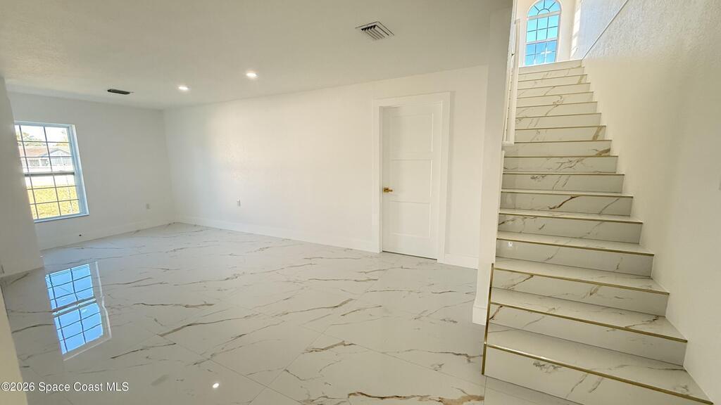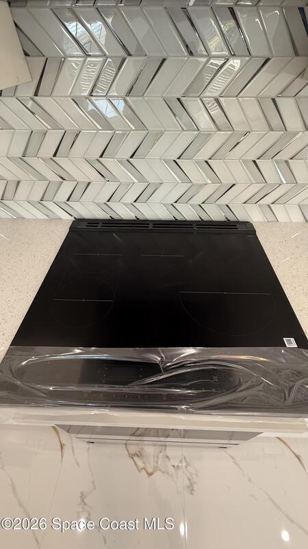 Completely renovated 4-bedroom home, including 2 master suites, in a prime location in Palm BayWelcome to this completely remodeled residence, designed with modern elegance and high-quality finishes throughout.From the moment you arrive, you'll notice the renovated facade, clean architectural lines, and inviting covered entrance. Inside, the home opens up to an open, spacious, and bright layout, with large-format porcelain tile flooring, recessed LED lighting, and designer accents.The stunning kitchen features:Spacious center island with quartz countertopsCustom two-tone cabinets with gold handlesModern chevron backsplashAppliances with glass topsContemporary pendant lightingWall-mounted range hoodThe master suite offers spa-inspired bathrooms with:Frameless glass shower enclosureDesigner tile backsplashGold accents and modern lightingThis home is move-in ready and ideal for multigenerational families seeking a comfortable, luxurious property well located