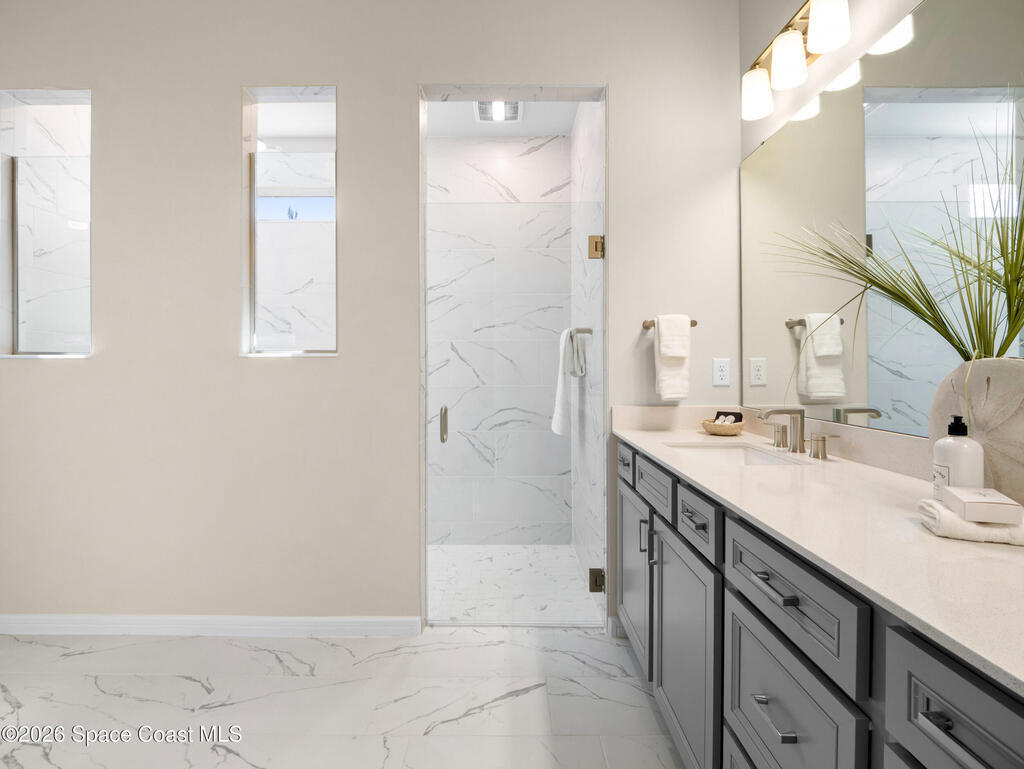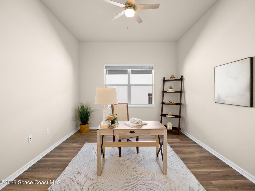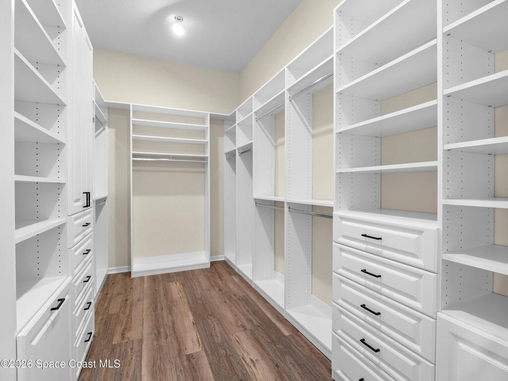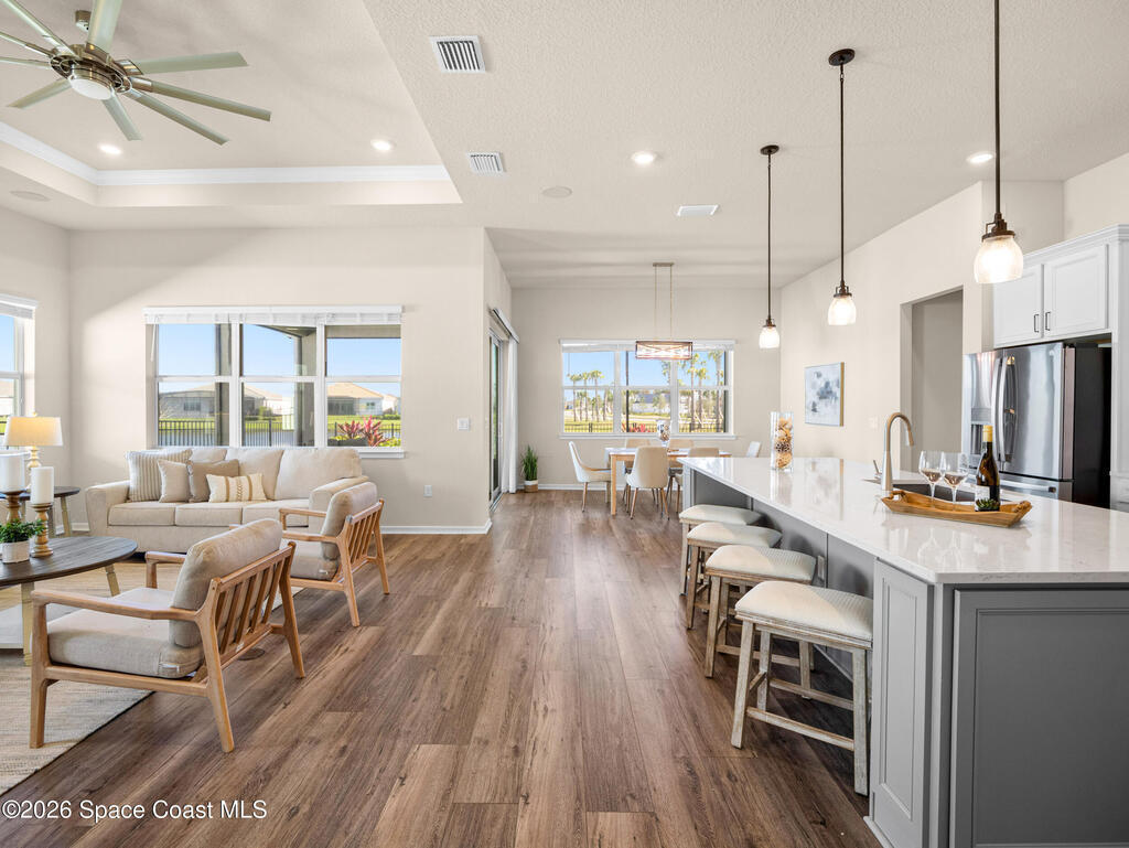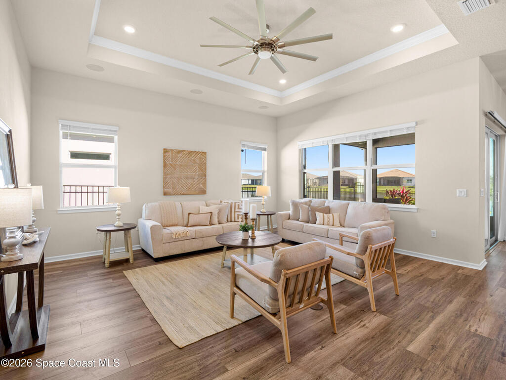 Trade snow shovels for sunshine in this stunning lakefront home in the gated Del Webb at Viera 55+ community--why wait to build when you can move now? Set on a premium corner lot w/ peaceful water views, this move-in-ready residence features an open layout w/ high ceilings & luxury vinyl plank flooring throughout. 3 full bedrooms + a flex space/office- the floor plan is immaculate! The gourmet kitchen offers quartz countertops, 5-burner gas cooktop, double ovens, upgraded cabinetry & a custom walk-in pantry--perfect for entertaining & everyday living. 3 of 4 bedrooms include private en-suite baths for comfort & privacy. Relax on the screened lanai overlooking the lake & fenced yard while enjoying Florida evenings--plus rare views of Cape Canaveral rocket launches from home. Custom closets, upgraded lighting & fans & an extended 3-car garage w/ epoxy floors complete this Florida dream home.