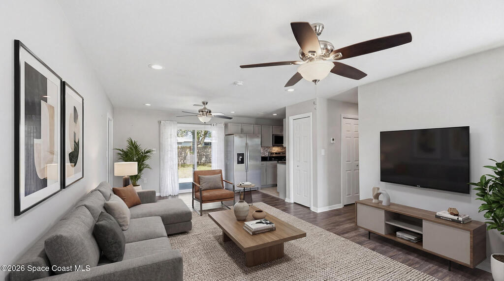$6,500 seller concession offered at closing! **2660 Fountainhead has it ALL** This concrete block home has a new metal roof with transferable warranty, newer windows and doors, updated plumbing and electrical, 4-bedrooms, 2-baths 1-car garage full mudroom with second refrigerator, second pantry and additional storage cabinets with access doors to the home, backyard and garage. , located just minutes from the Downtown Eau Gallie Arts District with convenient access to the beach, I-95, and some of the best shopping and dining Brevard has to offer!Inside, the open concept living space connects to the dining room with sliding glass doors leading directly to the sundeck and backyard. The updated kitchen features granite countertops, stainless steel appliances, under cabinet lighting and a built-in pantry. The primary suite offers an impressive layout with two closets, renovated bathroom, and an additional flex room that can be used as an office or nursery. Sliding glass