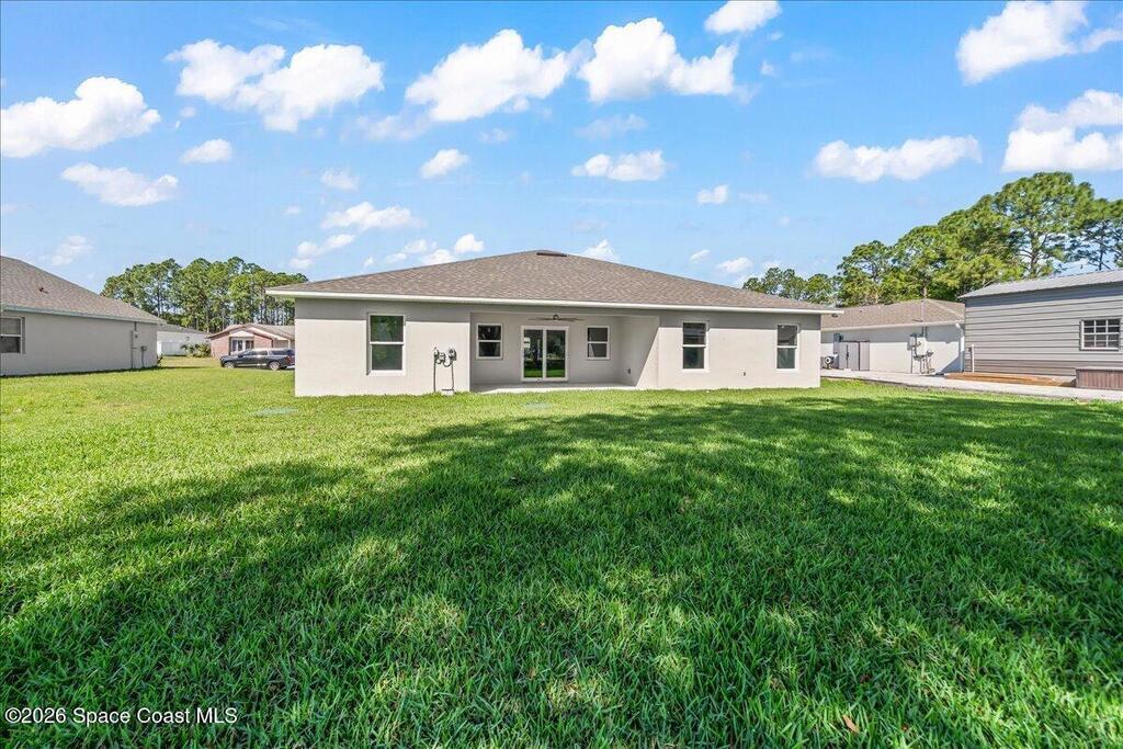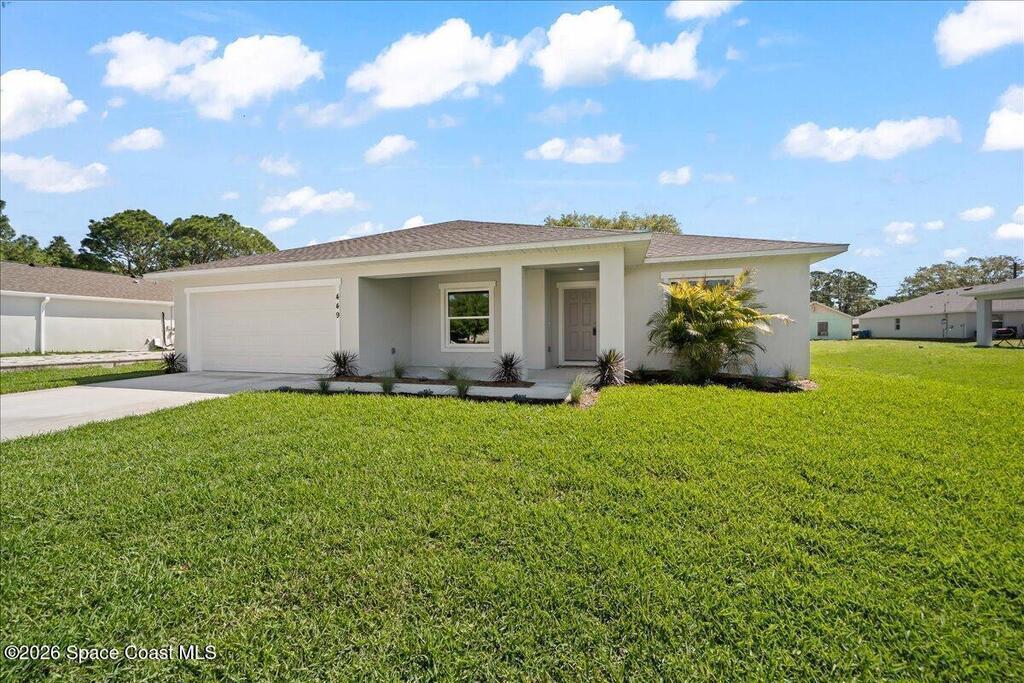YOUR New Construction dream home is ready for a quick move in! Carefully Crafted to feel custom, at moderate price! With over $35K in upgrades, it is sure to please. Open concept, Split floor plan, features 4 large bedrooms, 2.5 bathrooms, in-home laundry & No HOA with all the extras. The kitchen, conveniently located just off the great room, is a chef's DREAM with Quartz Counters, full size pantry, LED under cabinet lights, stainless appliances pkg (including an air fryer convention oven range & 4 Door refrigerator). Oversized island features a roll out drawer and extra storage. Retreat to the primary suite and enjoy the luxury bath including, roll in oversized shower w/ 3 shower heads, toe kick LED lighting, & water & linen closets. Step out back & relax on a spacious covered porch with a ceiling fan. Location? Just off Malbar Rd, close to St Johns Heritage Pkw, this home is centrally located, near Publix, Fred Poppy Park and much more! Lets Make this your house your HOME!
