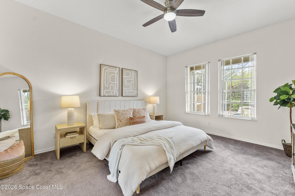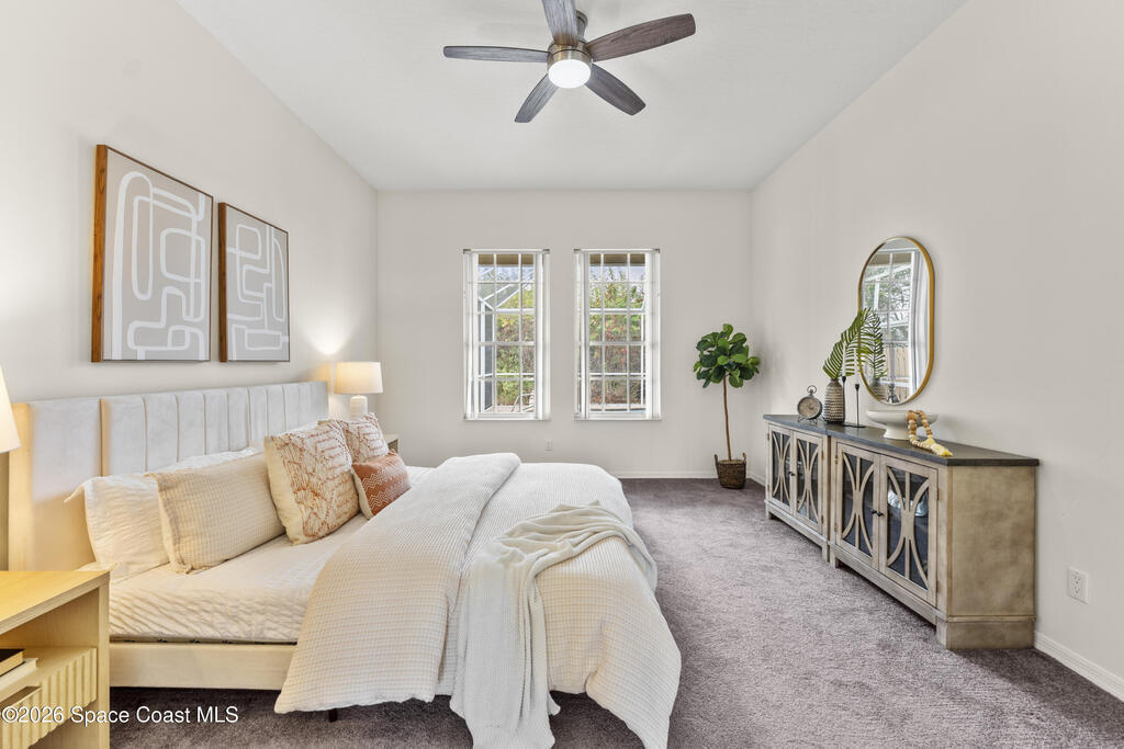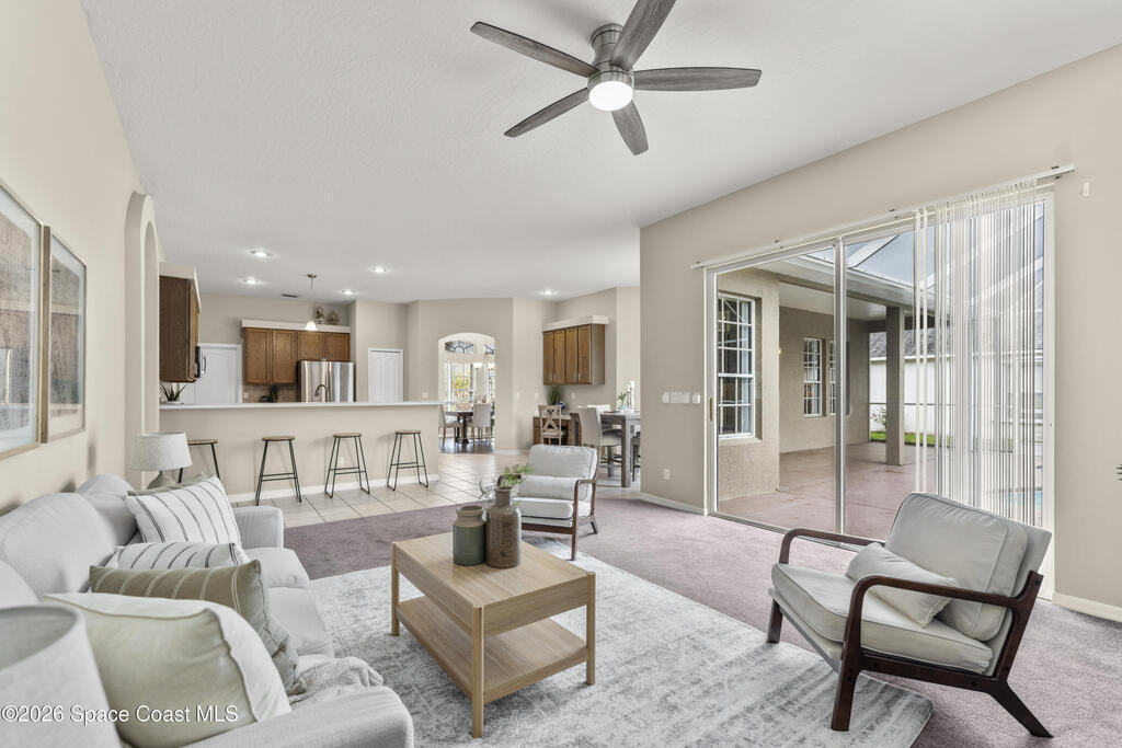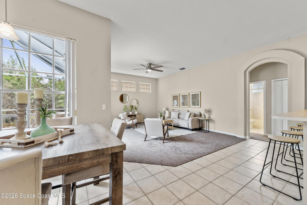 Enjoy the best of Suntree living in this beautifully maintained 3 BR/2 BA pool home tucked away on a quiet cul-de-sac and minutes from everything.Offering over 2,000 square feet of living space, this home features 10' ceilings, abundant natural light, and elegant architectural details including arched walkways and built-ins. The spacious floor plan includes an oversized living area, eat-in kitchen with island, and breakfast nook, creating the perfect flow for everyday living and entertaining. Enjoy Florida living year-round in the screened-in pool and patio with waterfall feature, ideal for relaxing or hosting guests. Major updates include a new roof (2021), complete HVAC replacement (2022), and pool pump motor (2025) for added peace of mind. Centrally located near shopping, dining, golf, parks, top-rated schools, I-95, the beaches, and Patrick Space Force Base.