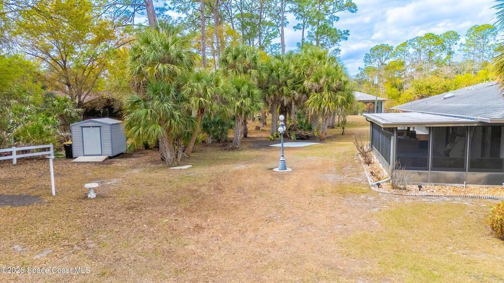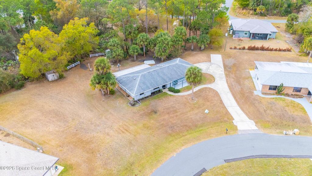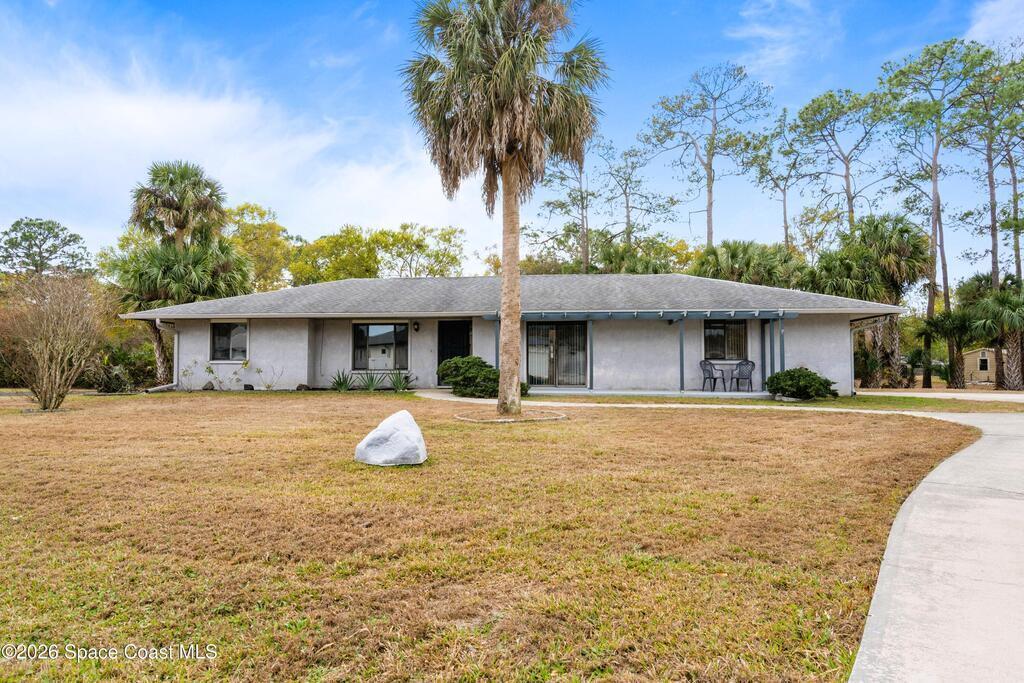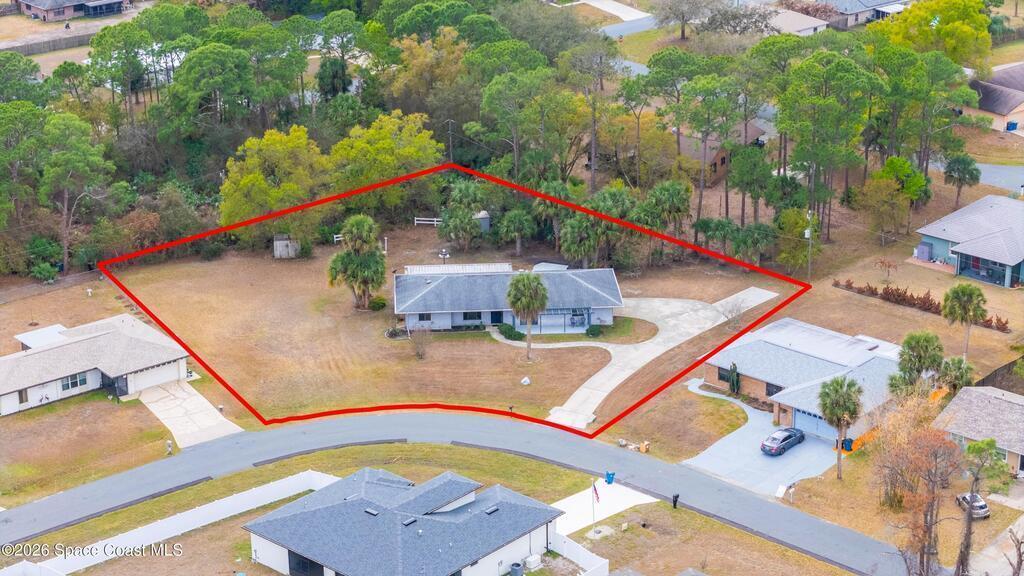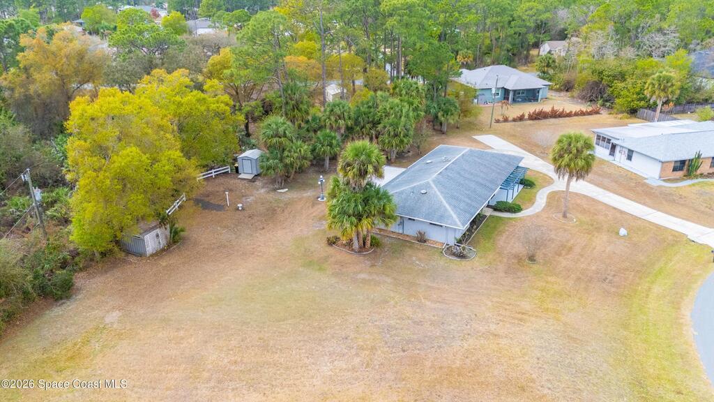 Looking for a move in ready home with some land that you can make your own - at your own pace? Here she is! This well maintained, ONE owner, 3 bedroom, 2 bath, concrete block home sits on .62 acres - a rare find especially at this price point! Inside, this split plan home offers a spacious primary suite with a walk in closet, a charming kitchen featuring KitchenAid appliances and tile in all wet areas. The GIANT Florida room has brand new screens and vinyl making this space truly usable year-round. Outside is a dream with an extended driveway, oversized 2-car garage and TWO storage sheds so you can bring ALL the stuff and still have plenty of room for a pool or additional building or both! Located in a convenient area of SE Palm Bay just minutes from I-95, shopping, dining and within walking distance to A-rated Odyssey Charter School. Roof 2016, HVAC and H2O heater are both within the past 2 years.