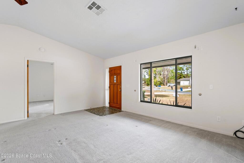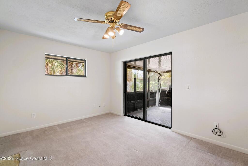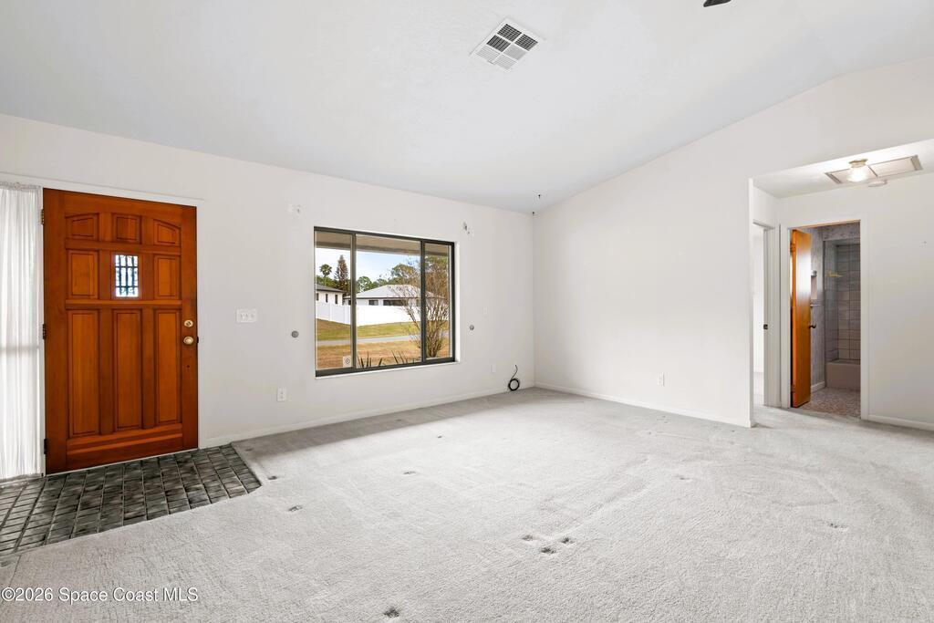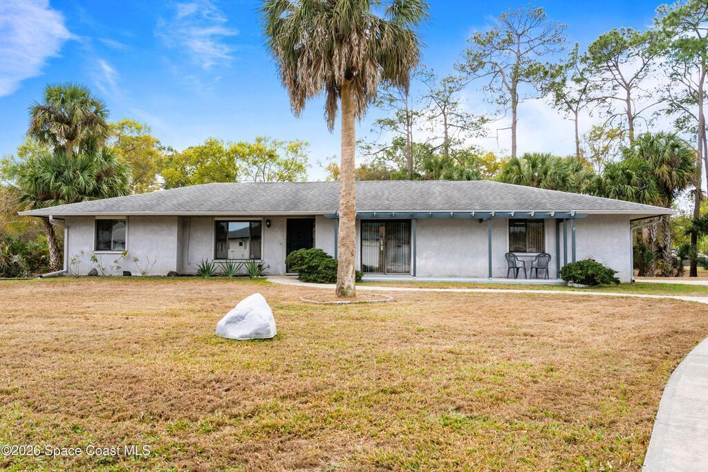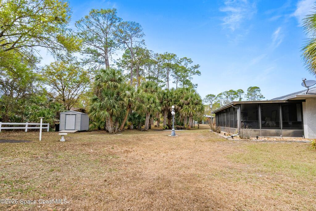 Looking for a move in ready home with some land that you can make your own - at your own pace? Here she is! This well maintained, ONE owner, 3 bedroom, 2 bath, concrete block home sits on .62 acres - a rare find especially at this price point! Inside, this split plan home offers a spacious primary suite with a walk in closet, a charming kitchen featuring KitchenAid appliances and tile in all wet areas. The GIANT Florida room has brand new screens and vinyl making this space truly usable year-round. Outside is a dream with an extended driveway, oversized 2-car garage and TWO storage sheds so you can bring ALL the stuff and still have plenty of room for a pool or additional building or both! Located in a convenient area of SE Palm Bay just minutes from I-95, shopping, dining and within walking distance to A-rated Odyssey Charter School. Roof 2016, HVAC and H2O heater are both within the past 2 years.
