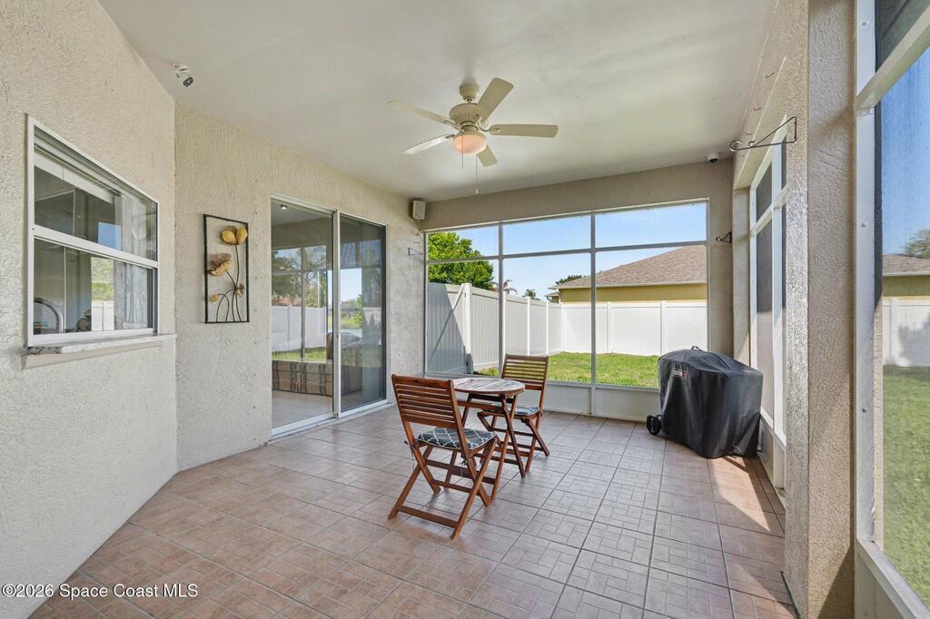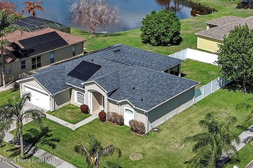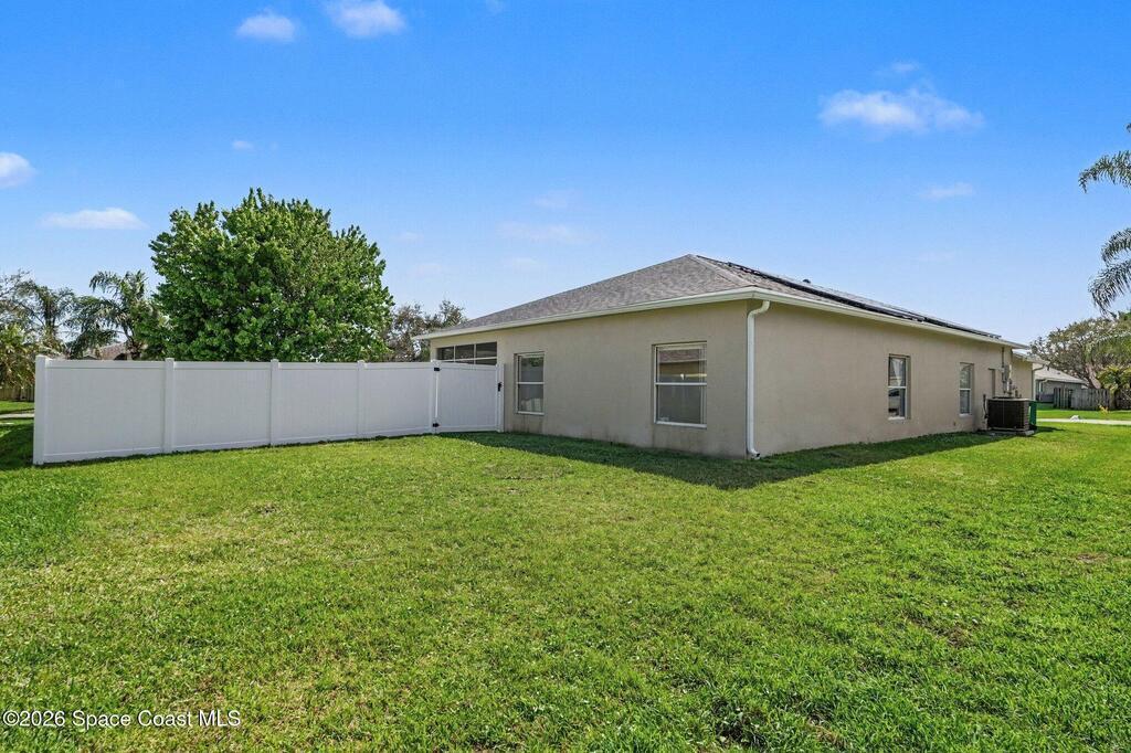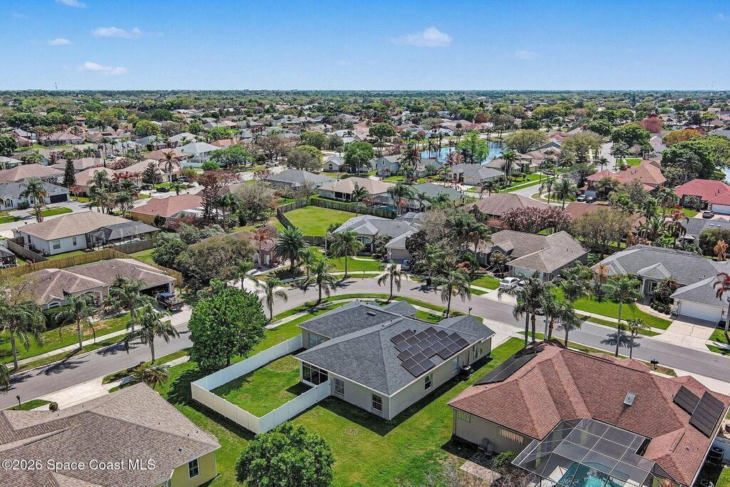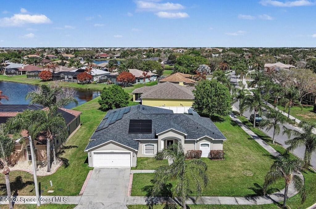 Experience sustainable living in this elegant solar-powered corner-lot home in desirable Viera, where comfort meets exceptional energy efficiency- Plus the seller is offering $5,000 toward buyer's closing cost or concessions!Featuring 3 bedrooms, 2 bathrooms, the open-concept layout showcases tile and vinyl plank flooring throughout the main living areas. Enjoy formal living and dining rooms plus a spacious family room that flows into the kitchen with granite countertops, center island, breakfast bar, and stainless-steel appliances (2022). Large primary suite featuring a walk-in closet and an ensuite bath with double sinks, upgraded cabinetry, soaking tub, and separate shower. Step outside to a partial fenced backyard, ideal for relaxing, pets or gathering. Save big with fully Paid solar panels. Additional updates include hurricane windows, roof (2020), gutters (2023), A/C (2020) and ADT alarm system. A fantastic opportunity in one of Viera's most desirable locations.