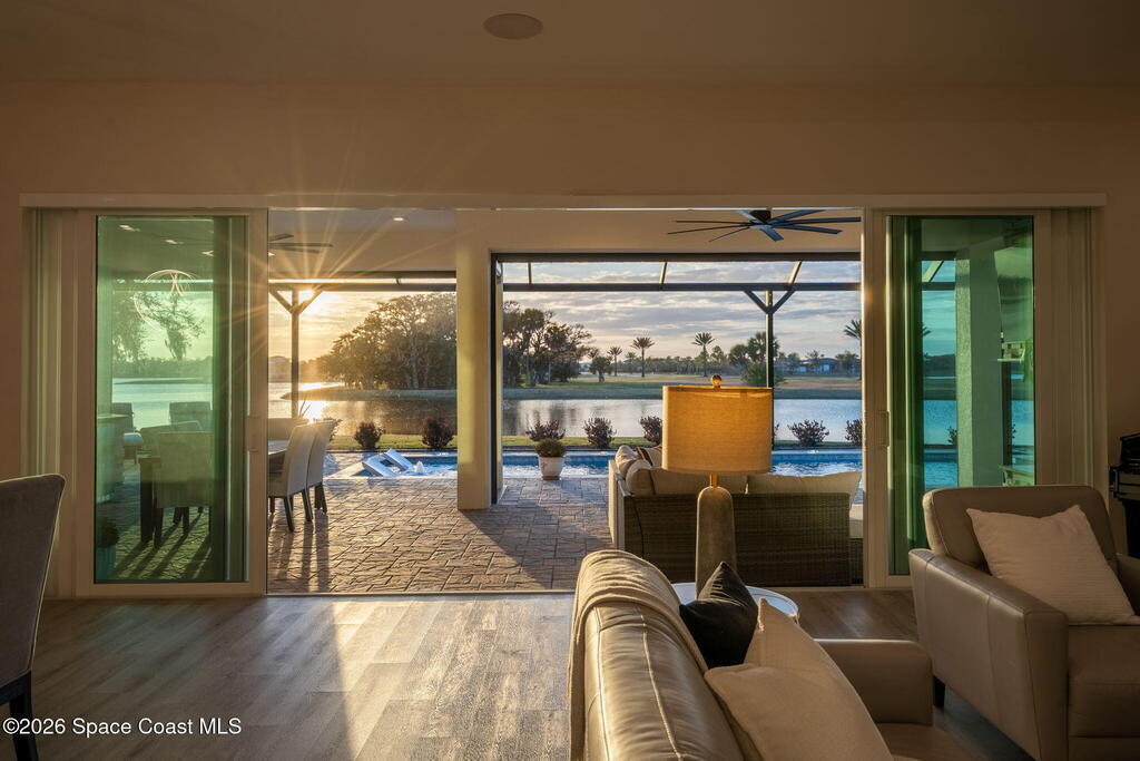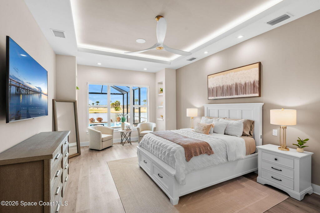 This striking 2023 custom estate in gated Adelaide captures breathtaking lake vistas & delivers an exceptional blend of design, technology & resort-inspired living. Soaring vaulted ceilings crown the open living space anchored by a sleek Dimplex fireplace & a dramatic raised two-level office. The chef's kitchen impresses w/ a fireclay apron sink, illuminated open shelving, pull-out spice storage & a fully customized pantry w/ granite counters & wood shelving. The private primary suite features dual vanities, a seated makeup station & a spa-style bath w/ frameless shower & Toto washlet-ready toilet. Outdoors, a gas-heated saltwater pool & spa showcase travertine coping, Blue Azure pebble finish, glass mosaic tile, tanning shelf, dual water features, color-changing LEDs & 10 therapy jets. A 3-car garage w/ polyaspartic flooring includes EV charging, generator pre-wire & storage racks. Control4 automation, 24 speakers, central vacuum & expansive lake views complete this remarkable estate.