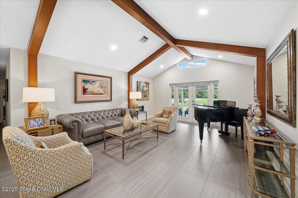 **ASSUMABLE 4.25% LOAN** Private Equestrian Oasis in the Heart of Melbourne - 5.5 Acres of Luxury LivingWelcome to your dream retreat -- a fully renovated 4-bedroom, 3-bathroom estate set on 5.5 secluded acres in the heart of Melbourne, Florida. This rare property offers a harmonious blend of tranquil country living with immediate access to upscale shopping, fine dining, and Florida's stunning coastline.From the moment you arrive beneath the newly constructed porte-cochere, you'll sense the craftsmanship and care that define this estate. Step inside to soaring vaulted ceilings with exposed beams, rich textures, and an inviting gas fireplace that anchors the open-concept living space. At the heart of the home is a chef's dream kitchen, equipped with premium Viking appliances, a gas range, and custom finishes -- all overlooking your private backyard sanctuary. Just outside, a newly built resort-style pool with dual sun shelves invites you to unwind or entertain in pure Florida